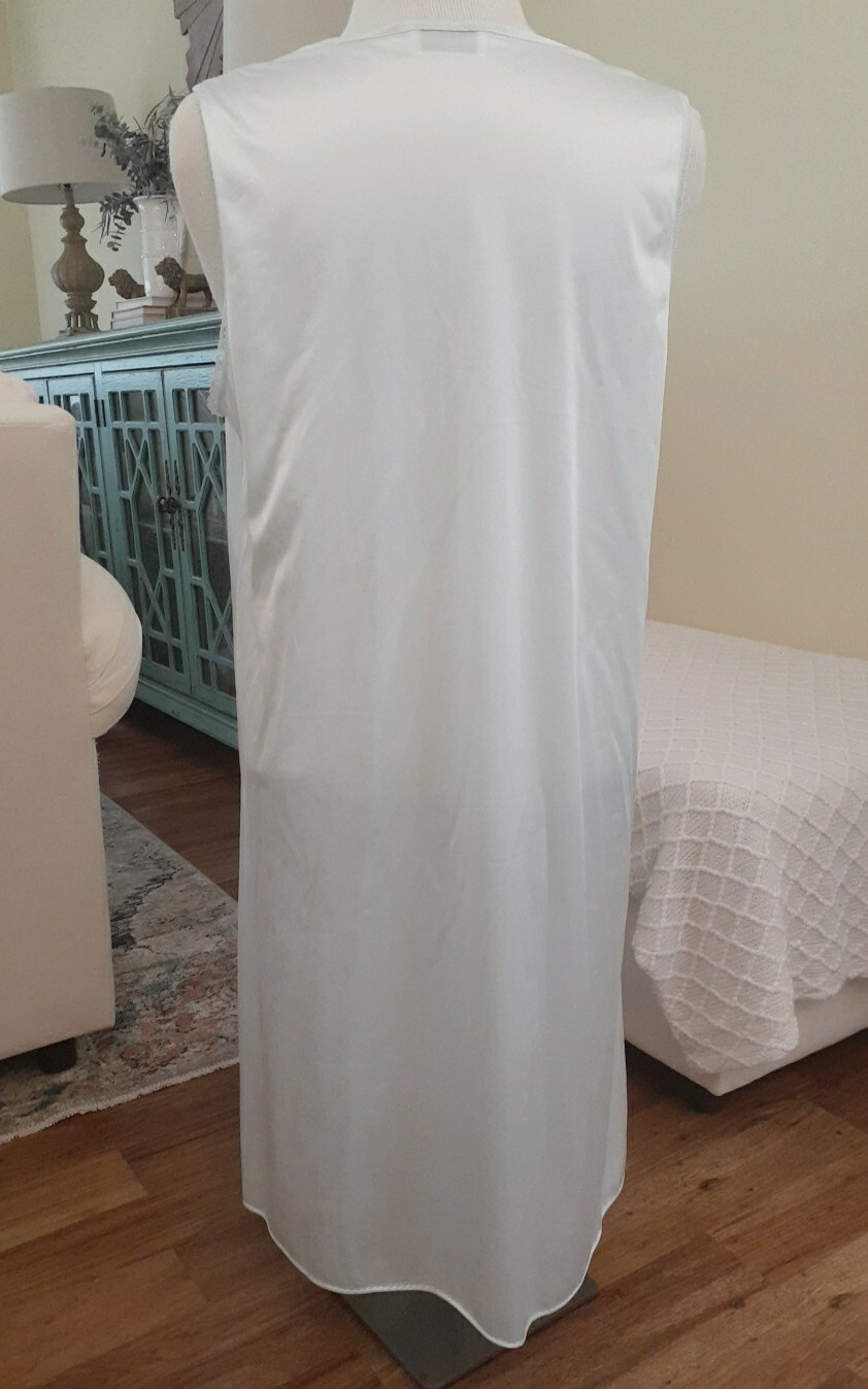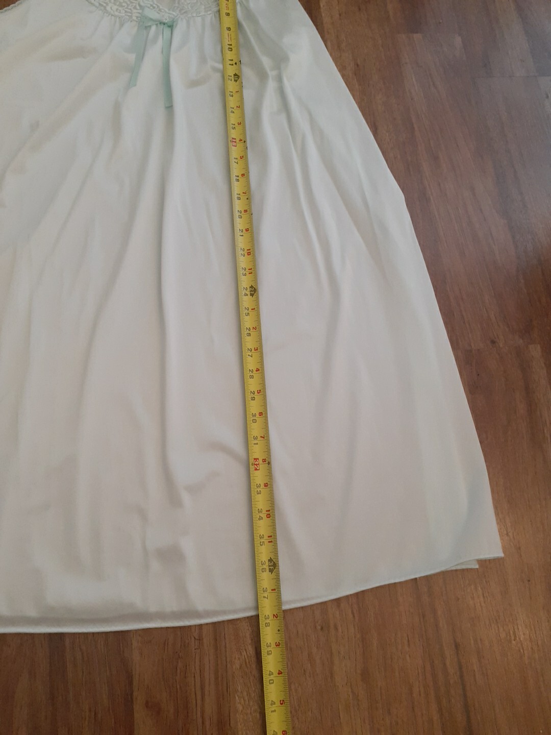 как выглядит Vtg 80s Vanity Fair Sleeveless Nightgown Women Med Nylon Light Green Lace 37" фото