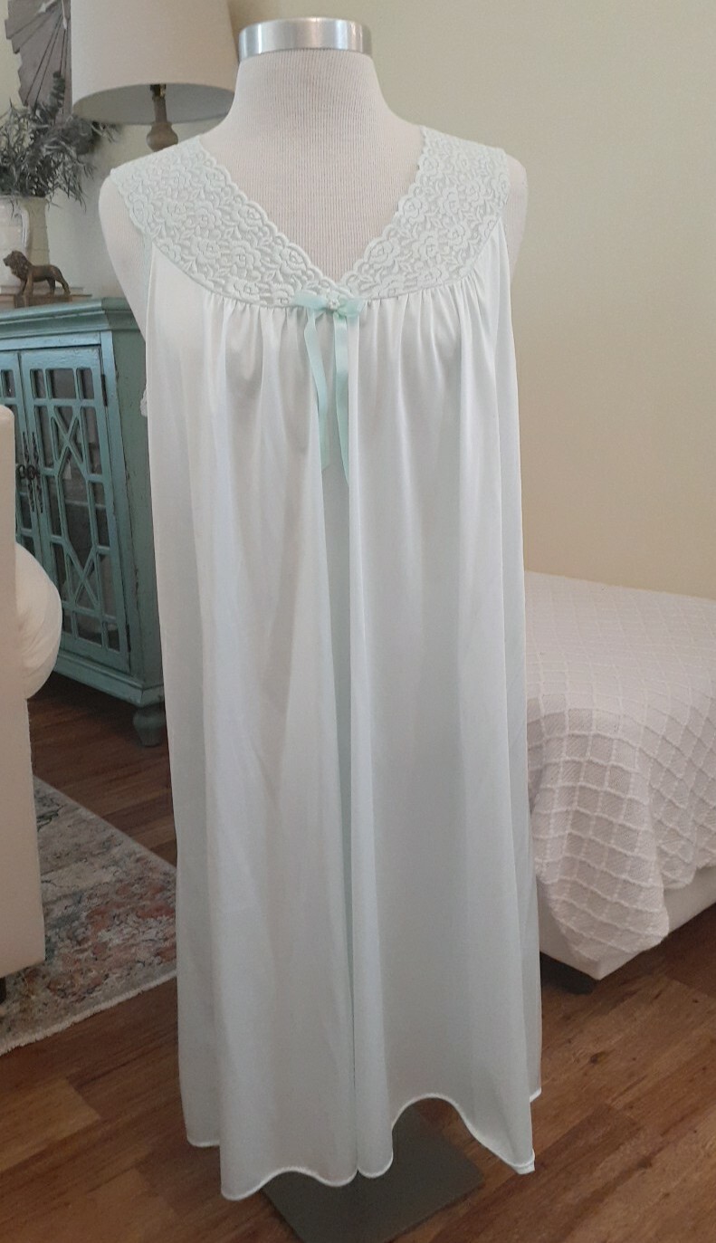 Vtg 80s Vanity Fair Sleeveless Nightgown Women Med Nylon Light Green Lace 37