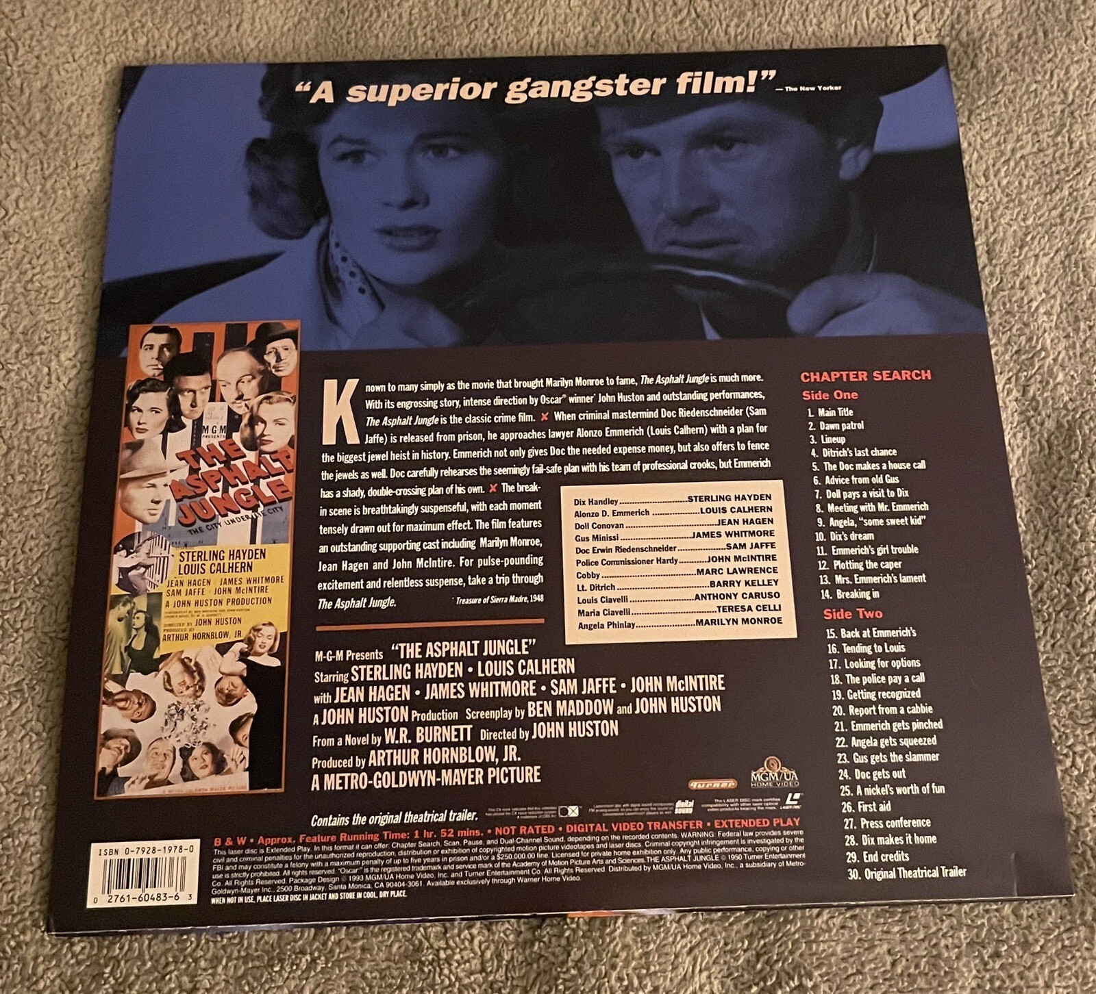 The Asphalt Jungle Laserdisc John Huston Sterling Hayden Marilyn Monroe 1950 BW