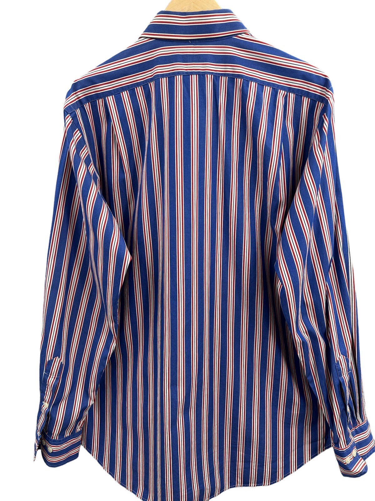 как выглядит Polo Ralph Lauren Button Up Shirt Regent Classic Fit Blue Red Stripe 16 1/2 Lrg фото