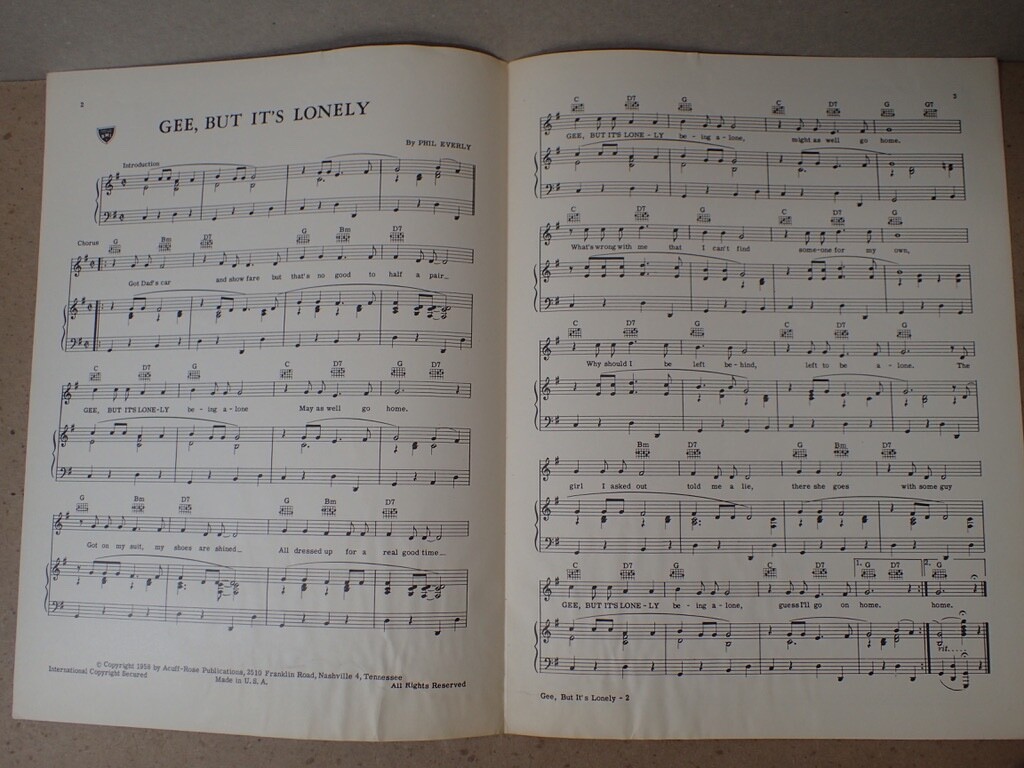 1 vintage sheet music PHIL EVERLY - Gee, But It's Lonely, DOT Records