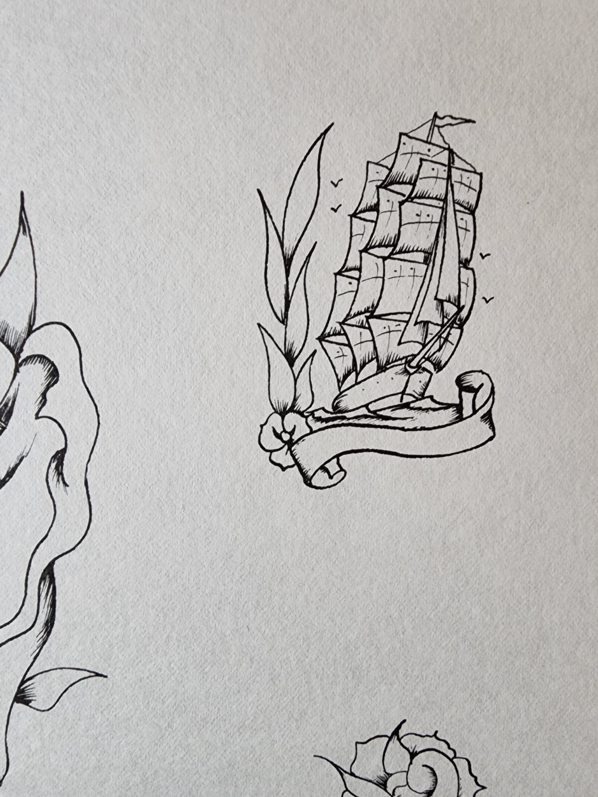 ORIGINAL Traditional Vintage 1981 National Tattoo Flash Sheet Unknown Sweden