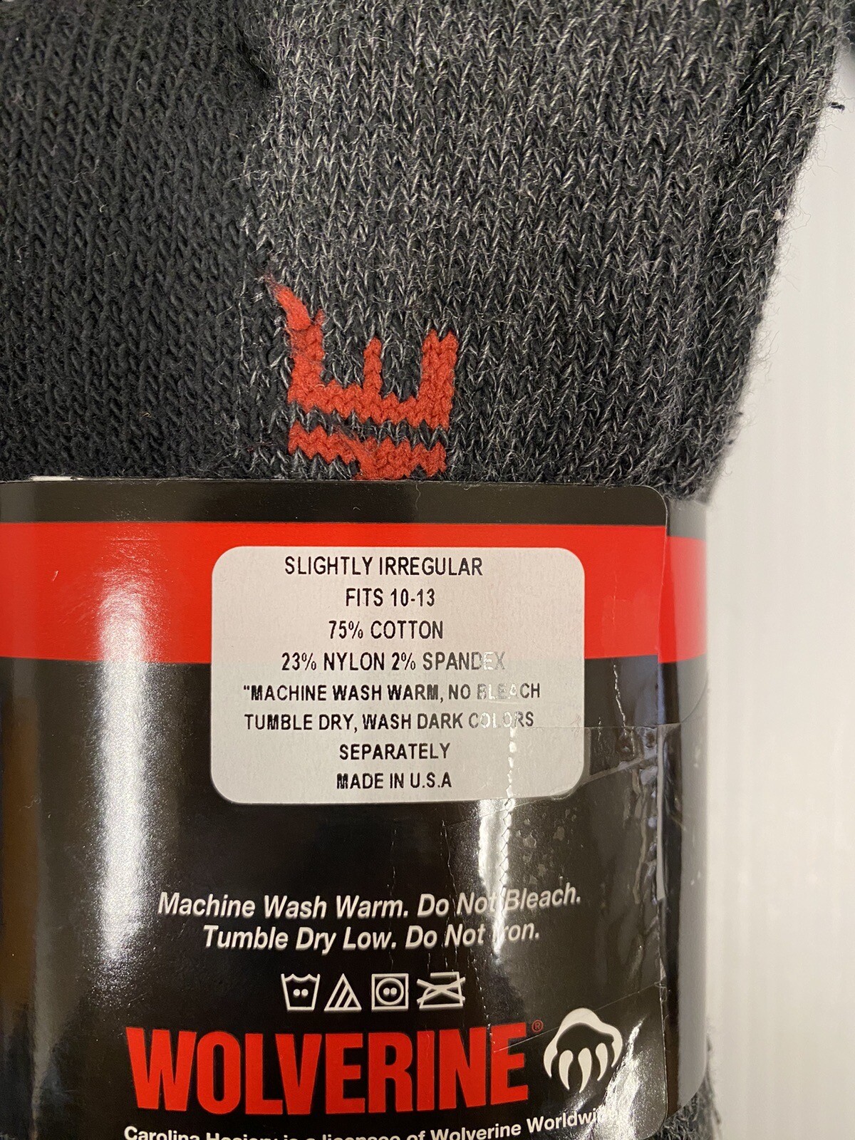 6 Pairs Wolverine Heavy Cushion Men's Mid-Calf Socks Large shoe size 9-13
