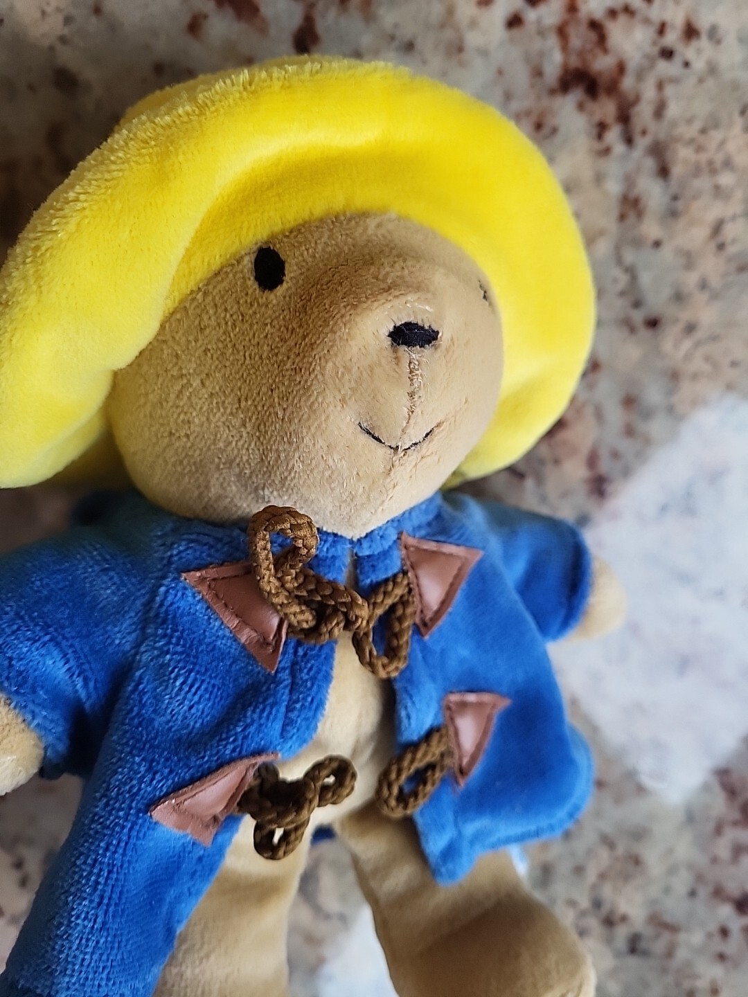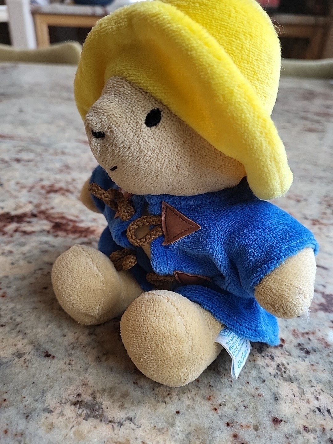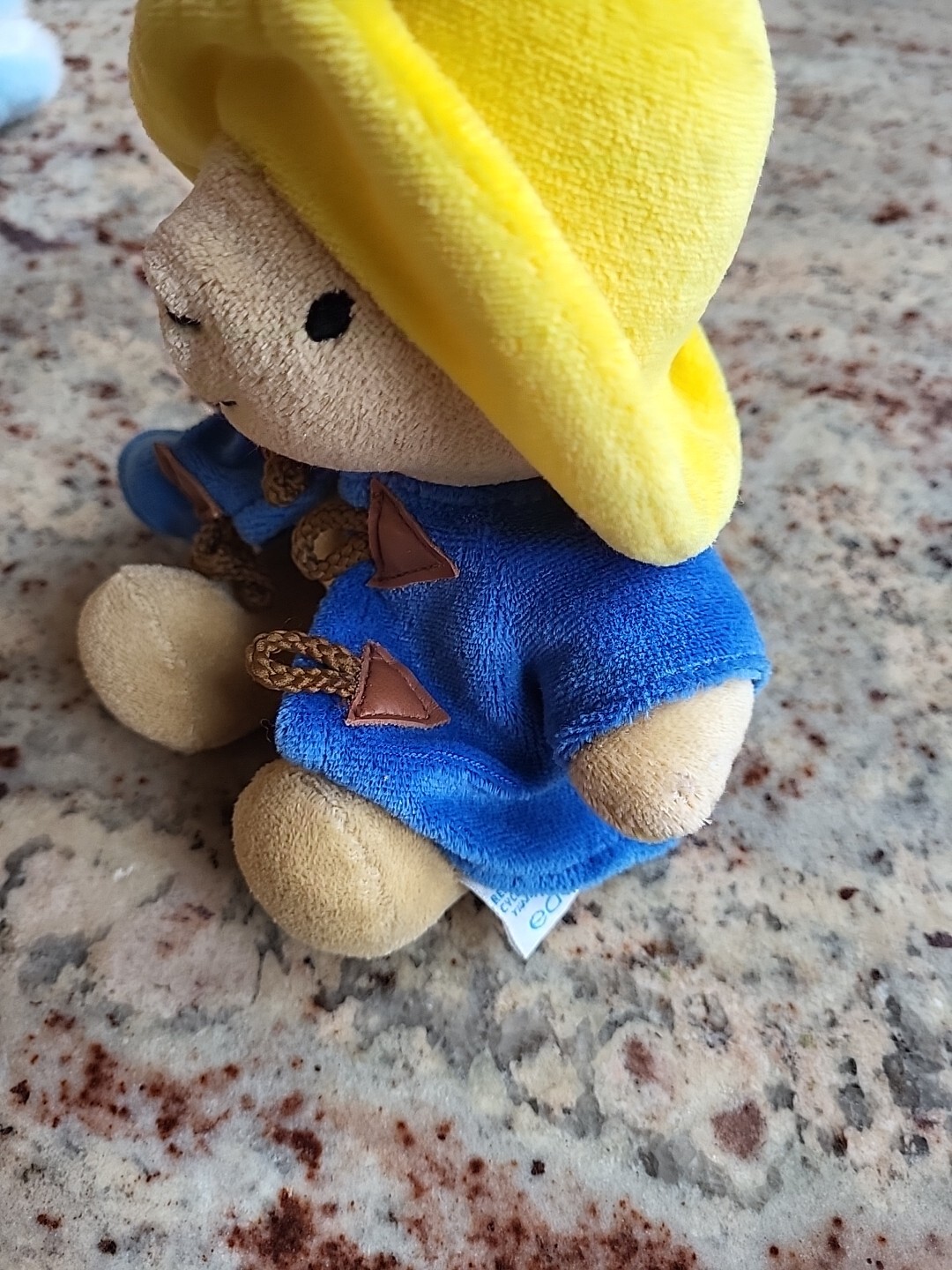 как выглядит Vintage 1998 Eden Toys Paddington Bear Plush Blue Coat Yellow Hat Stain On Hat фото