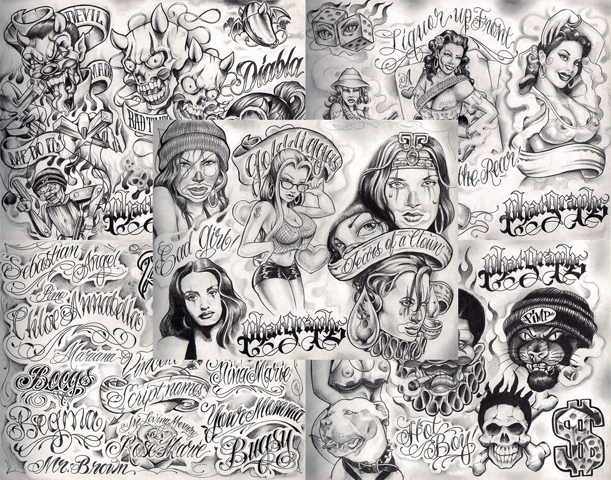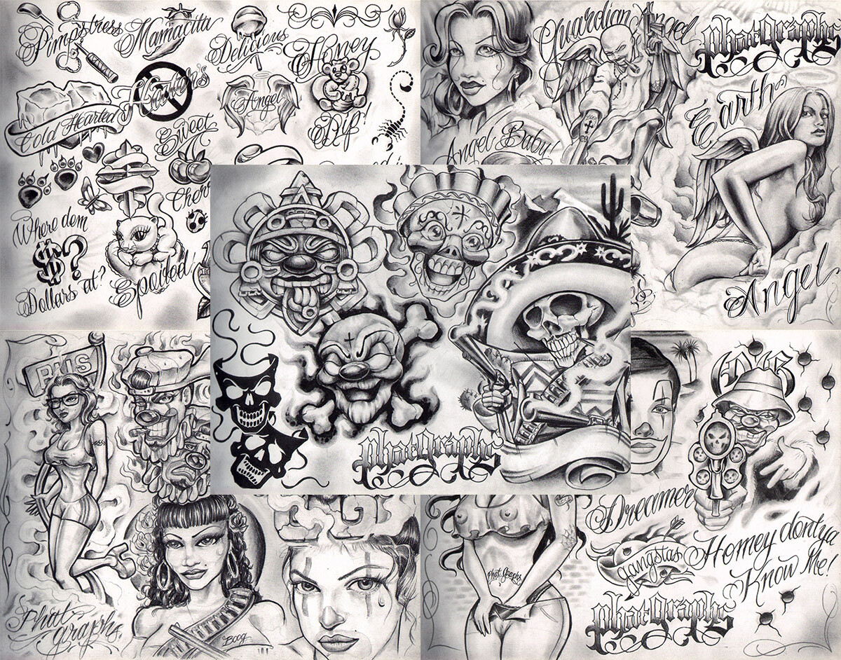 Boog From The Streets With Love Gangsta Style Tattoo Flash 10 Sheet Set 11x14 N