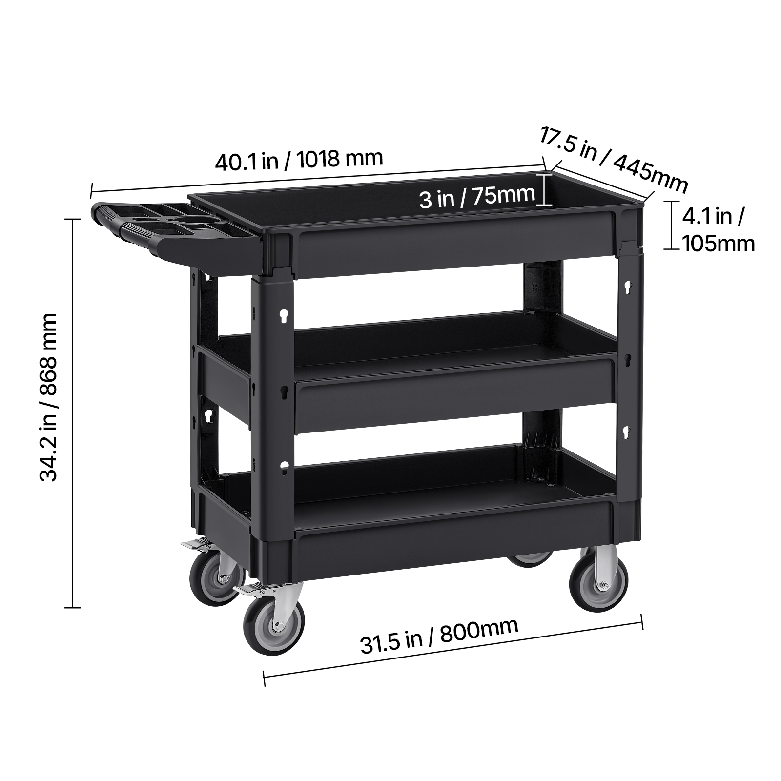 Utility Service Cart Rolling Cart 2/3 Shelf 550LBS with 360 Swivel Wheels