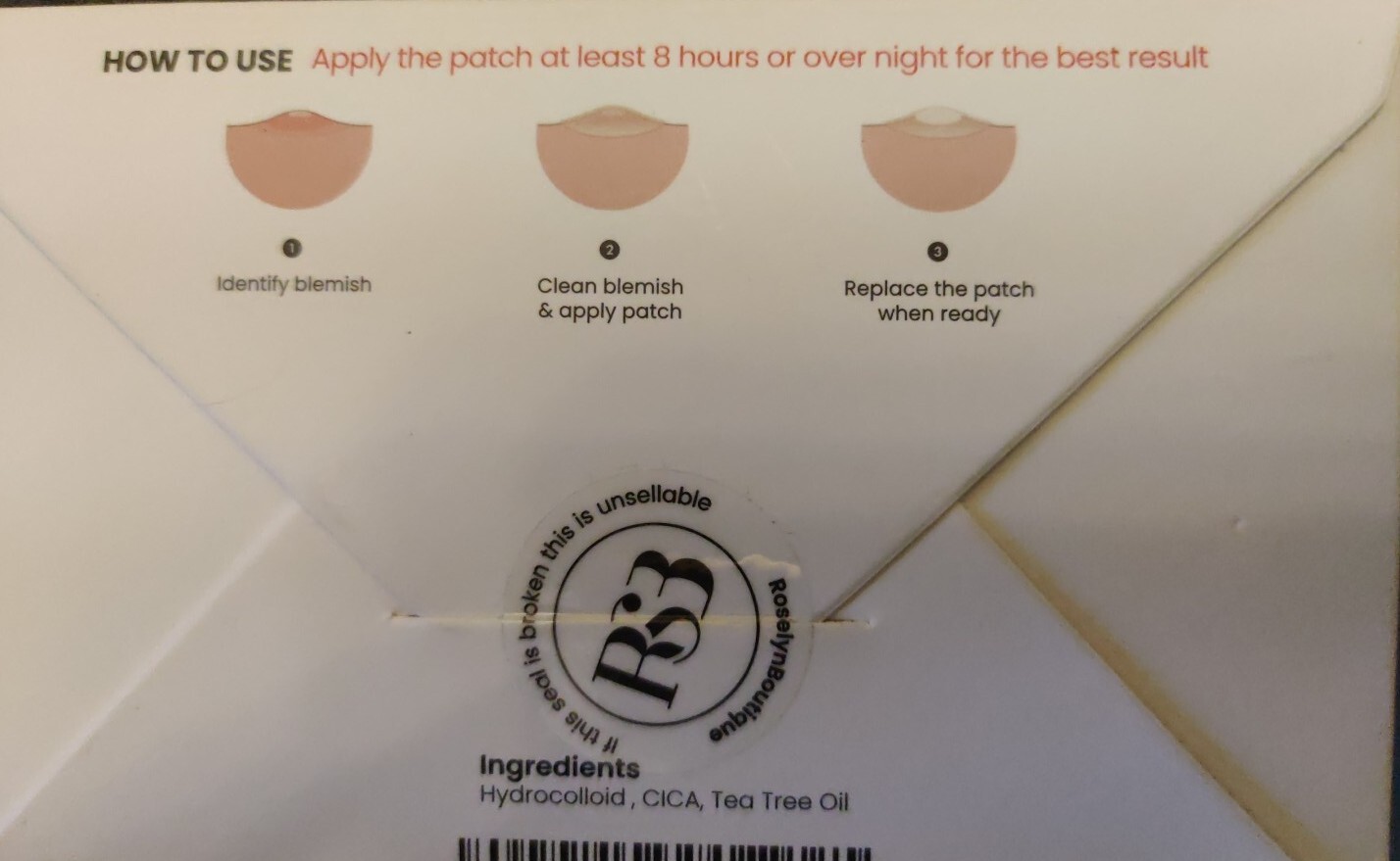 Ingredients: Tea Tree Oil, hydrocolloid, salicylic acid