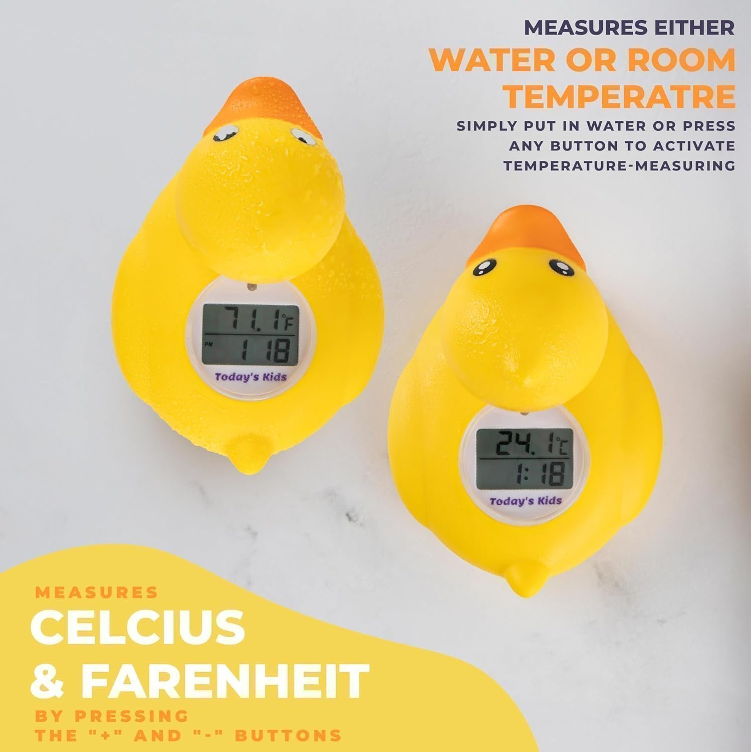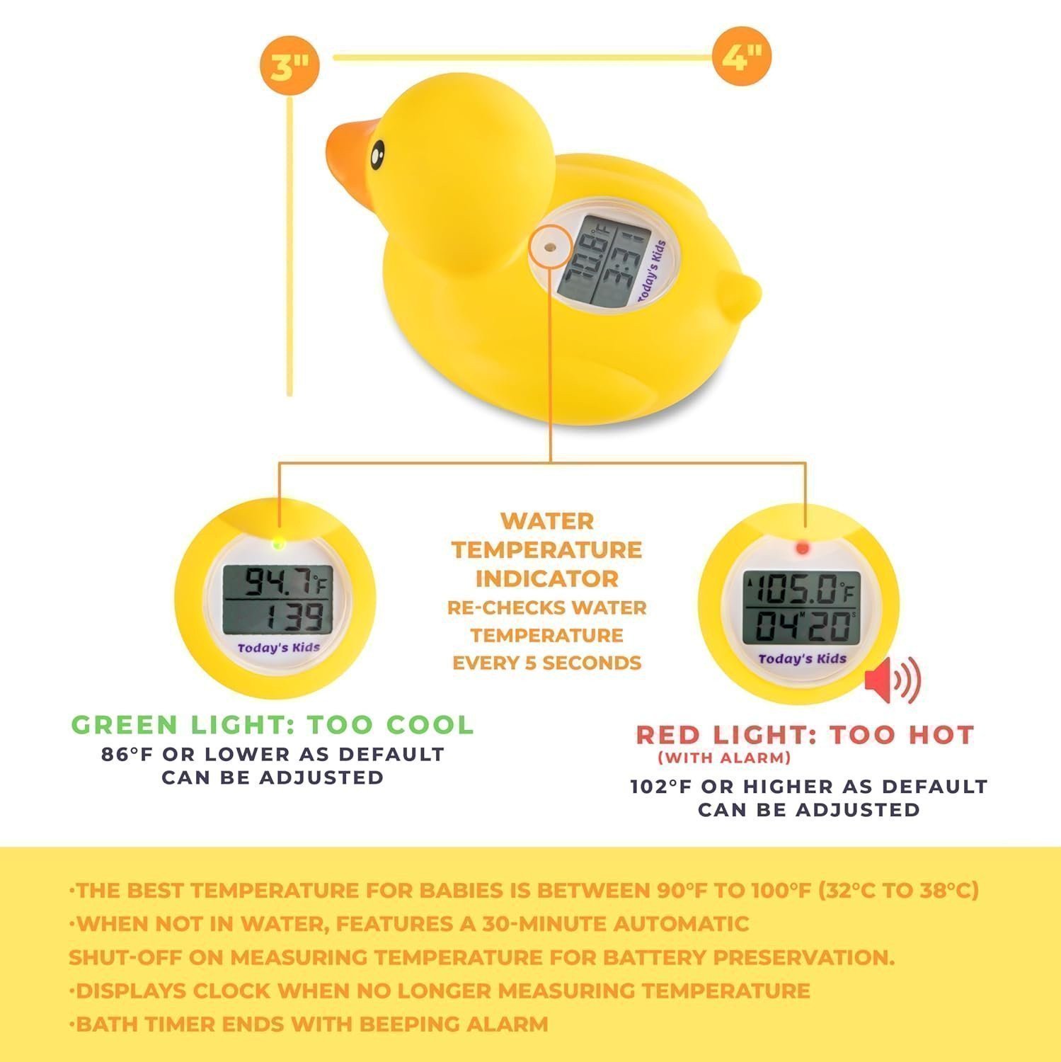 Todays Kids Duck Baby Bath Thermometer Clock - Fahrenheit Celsius Baby...