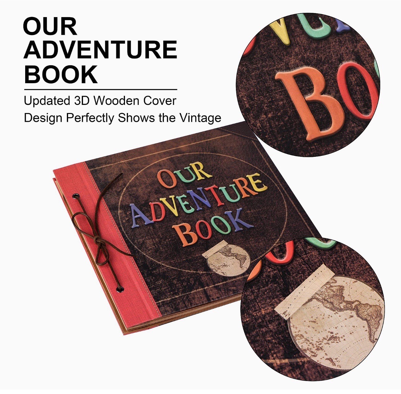 Scrapbook Photo Album,Our Adventure Book Scrapbook, Embossed Words Hard Cover Mo