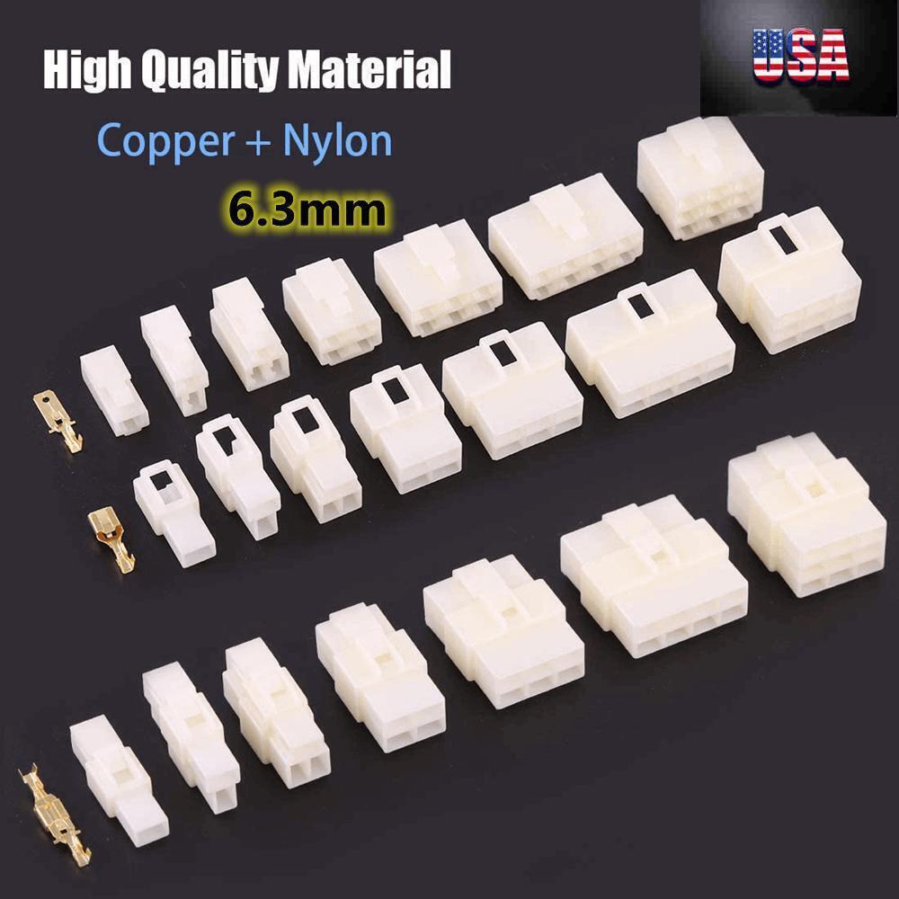 6.3mm Auto Car Connector Plug Male Female Socket Terminal 2/3/4/8 Pin Set