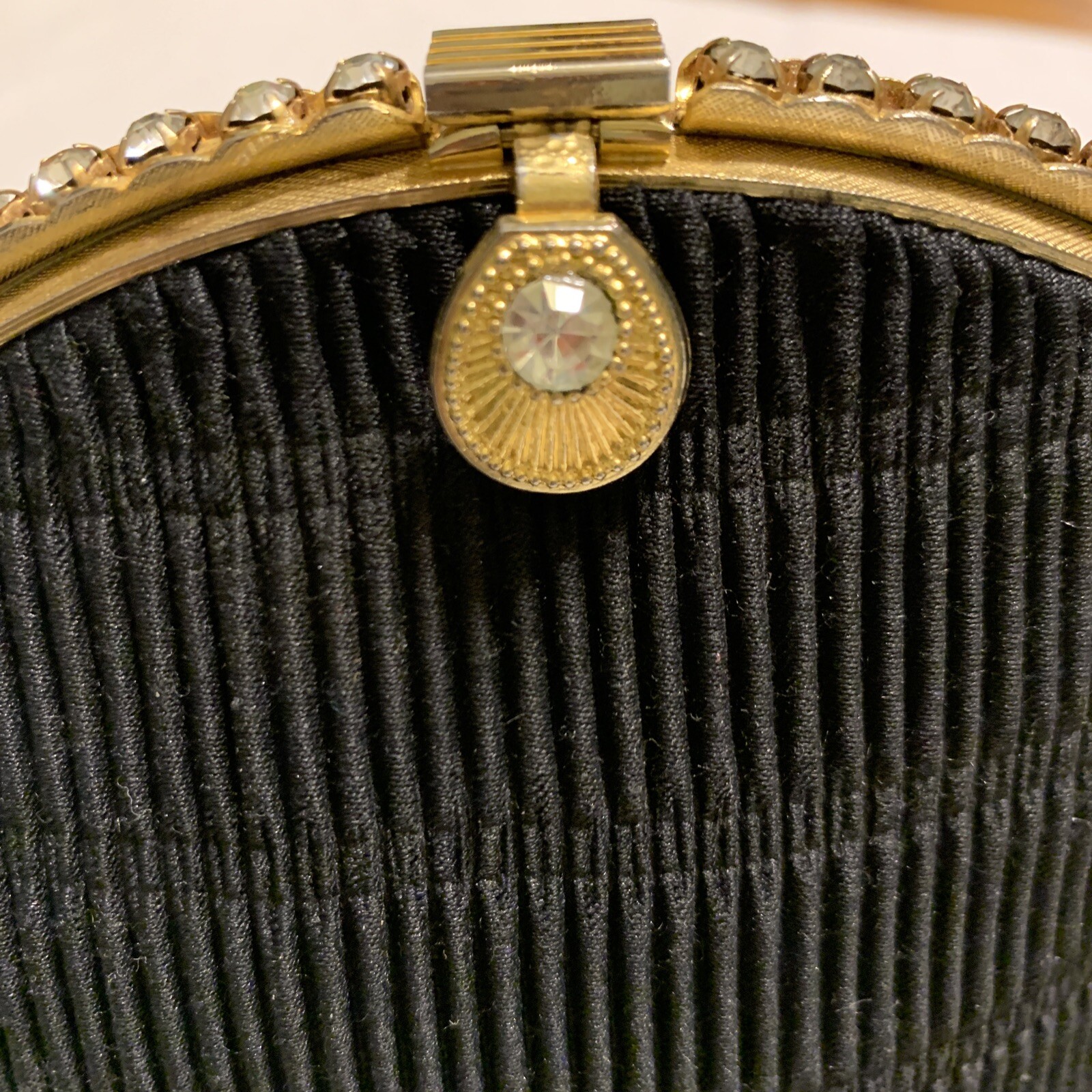 как выглядит Vintage Black Evening Bag Long Chain Strap Made In Hong Kong Stones On Top фото