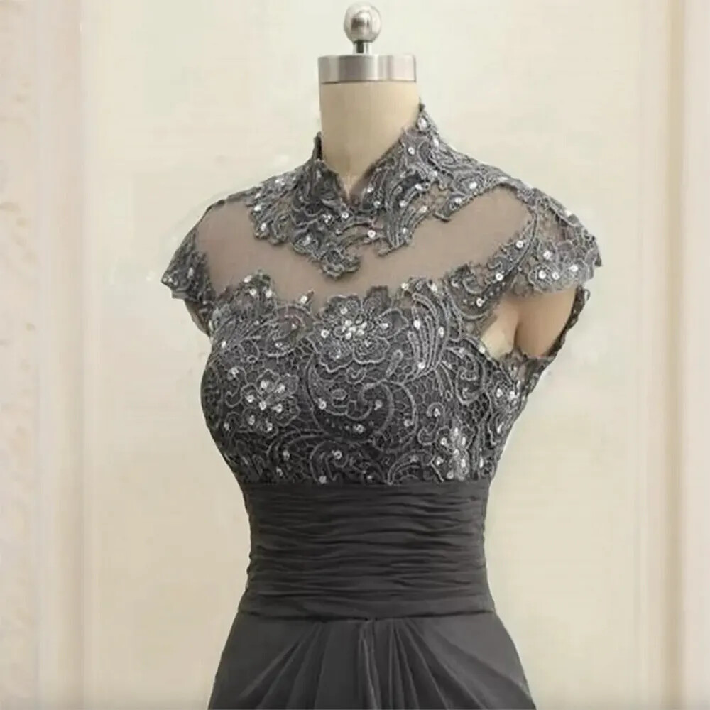 как выглядит Vintage Mother of the Bride Gowns High Neck Short Sleeves Beaded Sequined Gowns фото