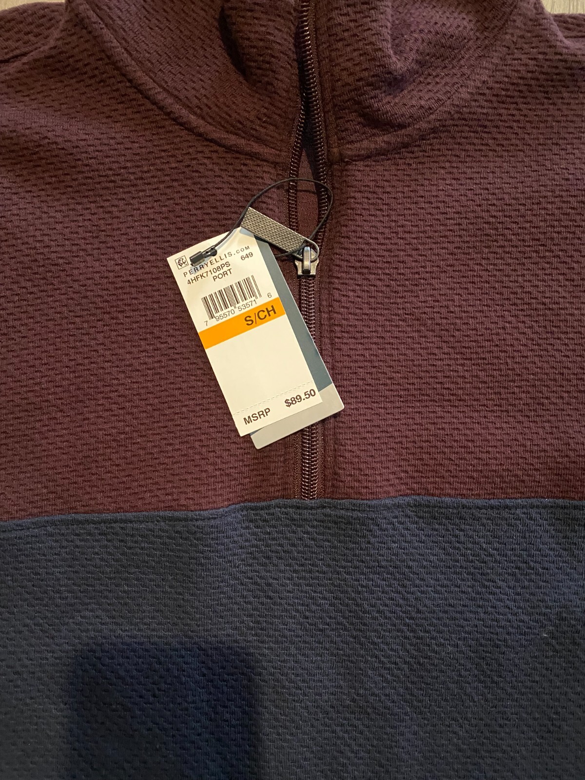 NWT MEN'S PERRY ELLIS SMALL 89 RETAIL NAVY BLUE QUARTER ZIP SWEATER SWEATSHIRT