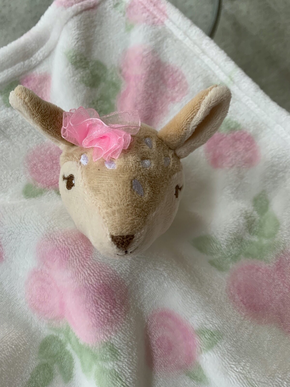 как выглядит HB Hudson Baby FAWN Deer SECURITY BLANKET White Pink Roses Soft Plush LOVEY EUC фото