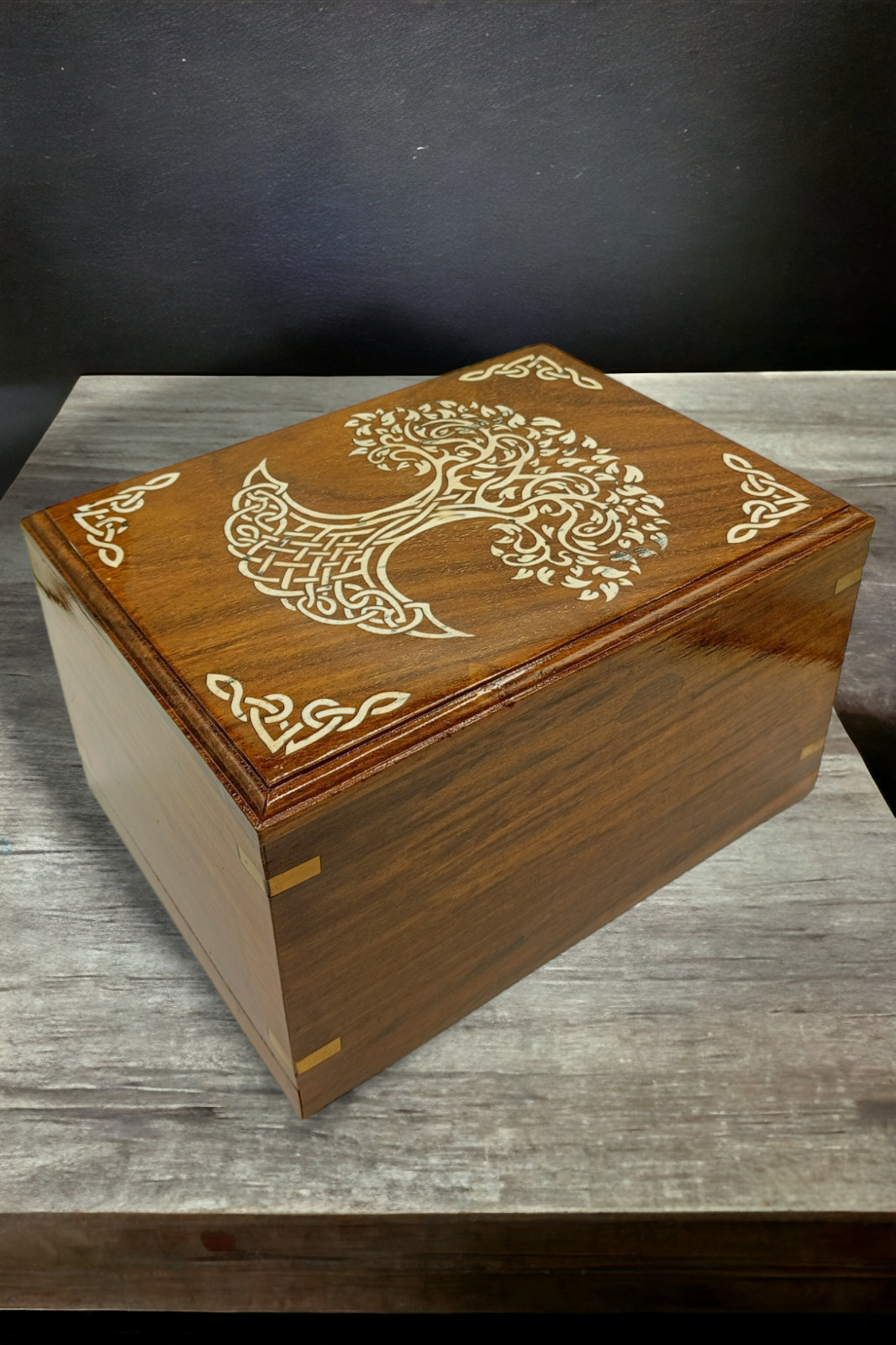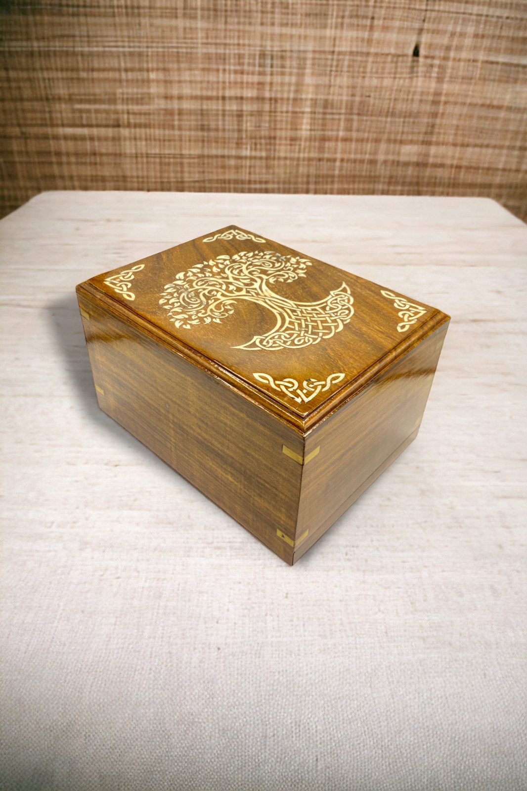 • Wooden Urn for Human Ashes Tree of Life Wooden Urns Handcrafted Funeral Urn