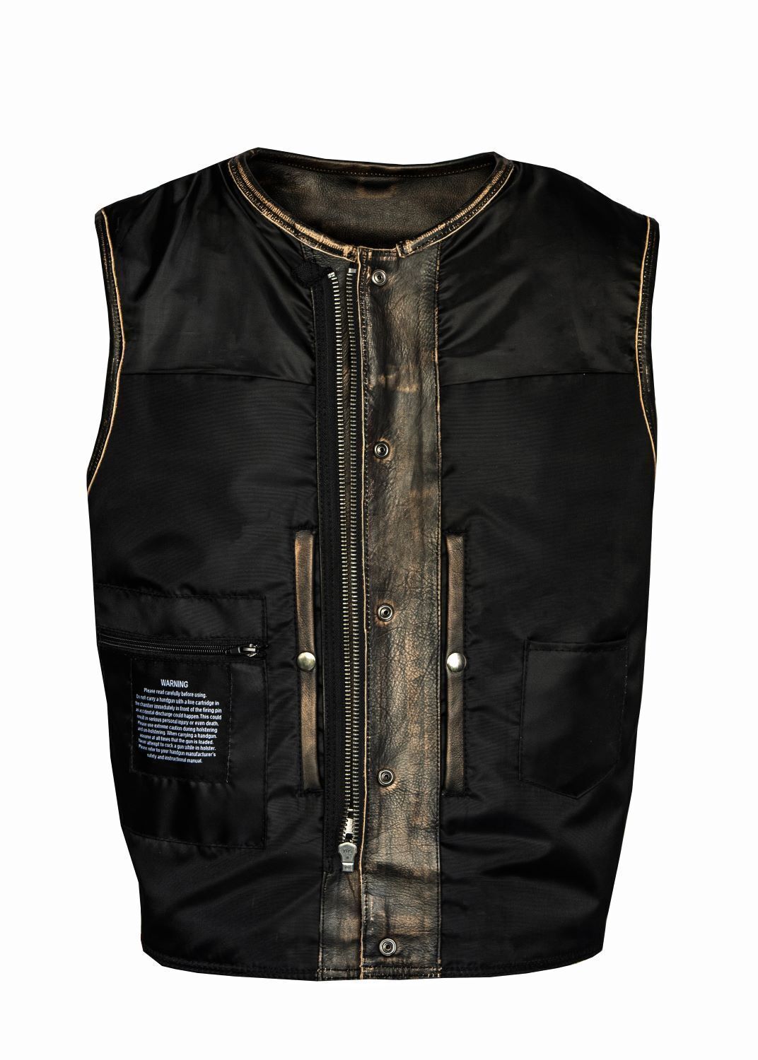 Distressed Brown Leather Vest for Men - Heavy Duty Black Biker Motorcycle Style