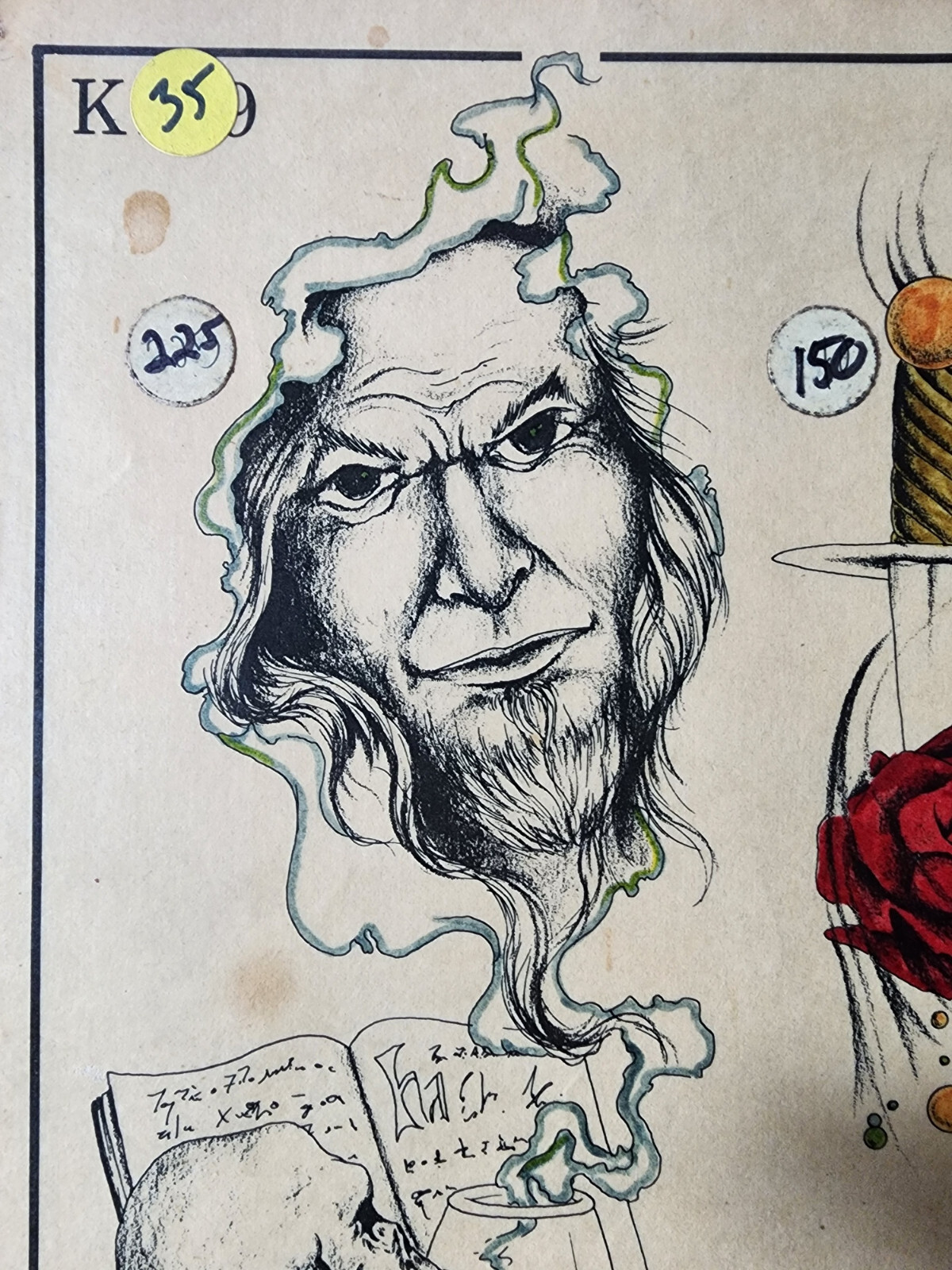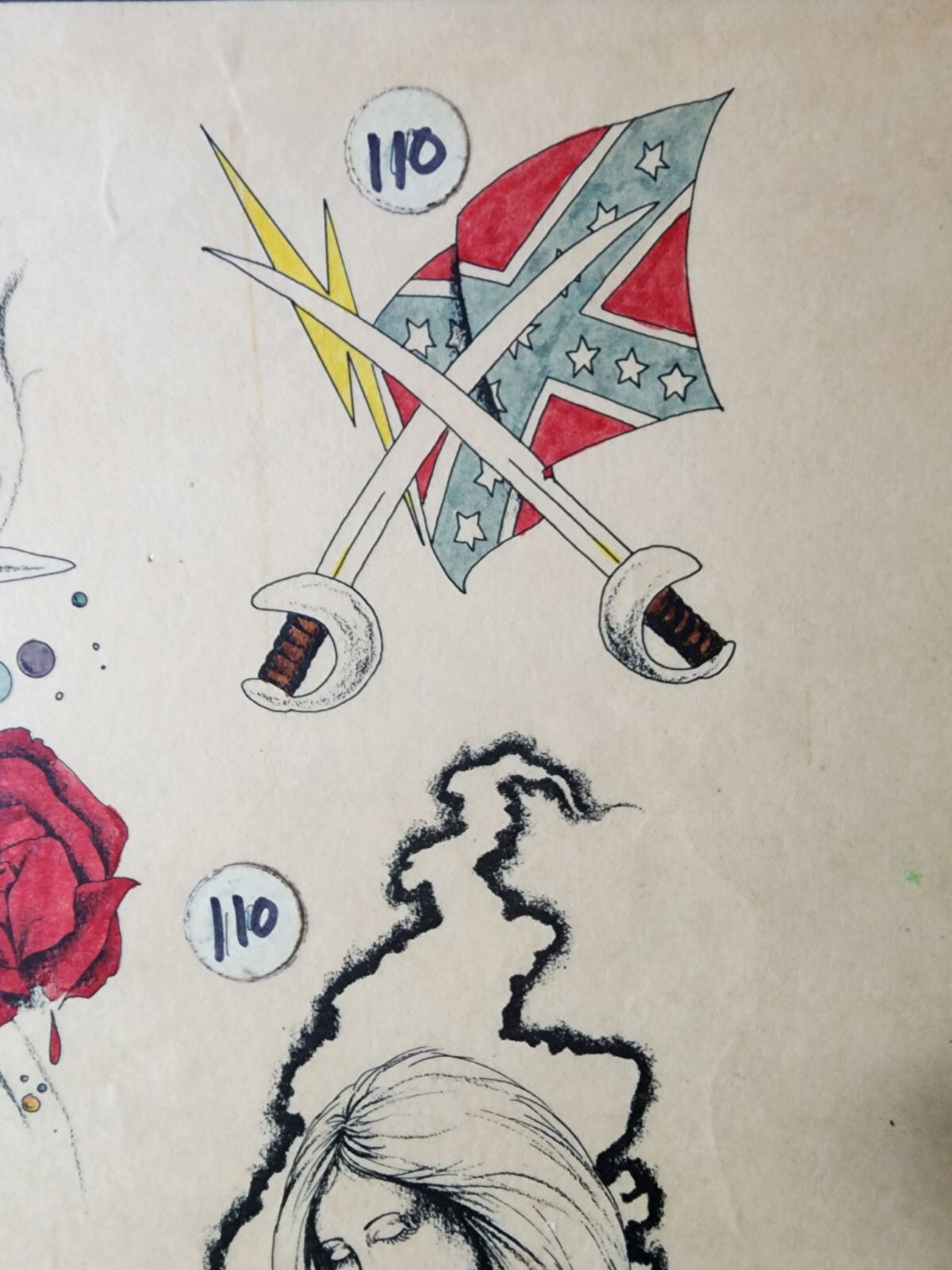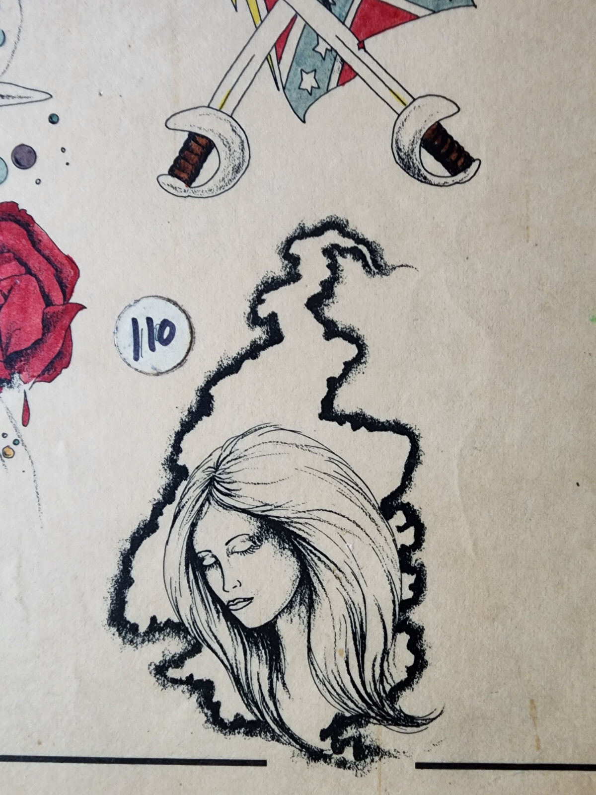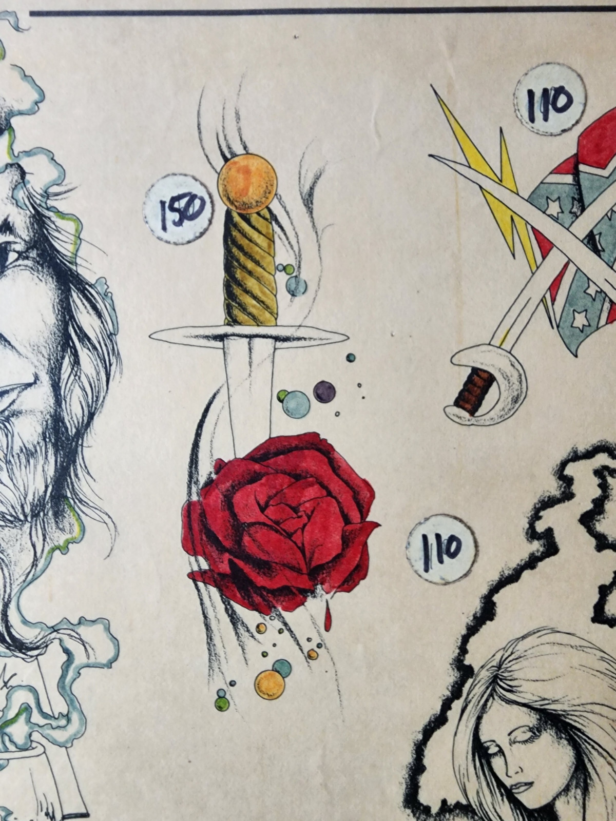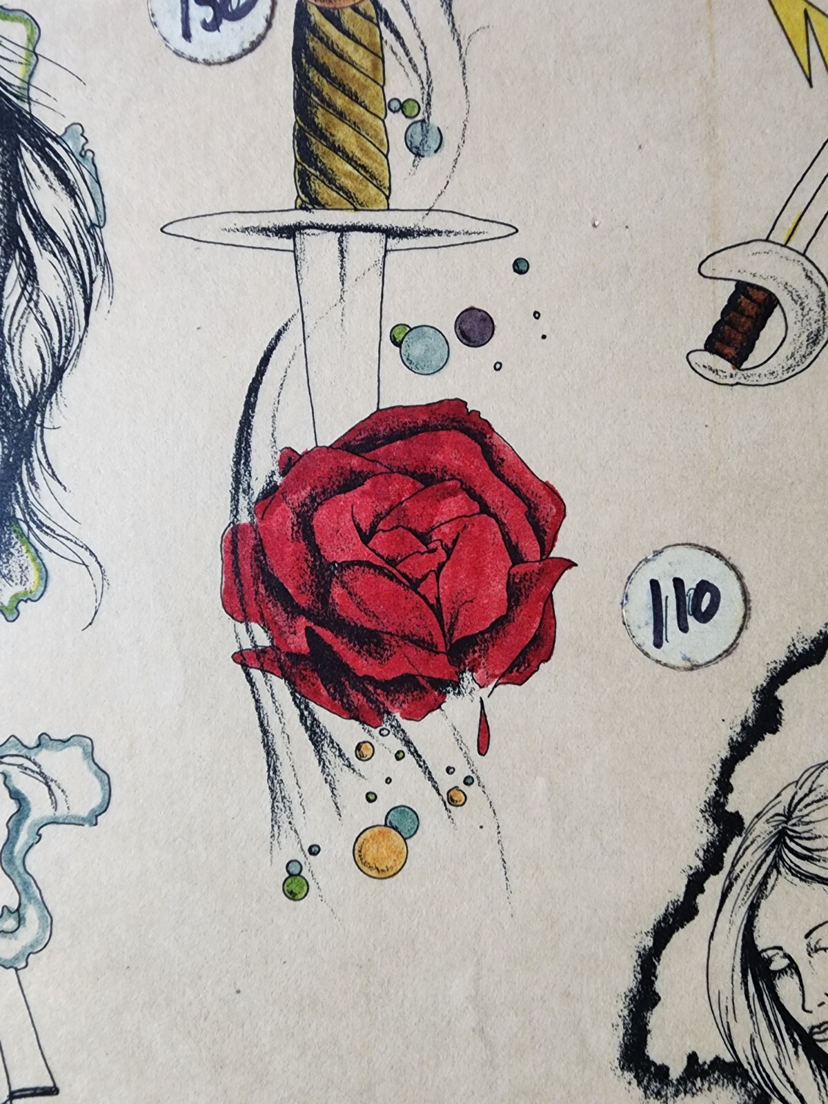 как выглядит ORIGINAL Vintage 1983 Spaulding Rogers Shop Used Tattoo Flash Sheet Hand Color фото