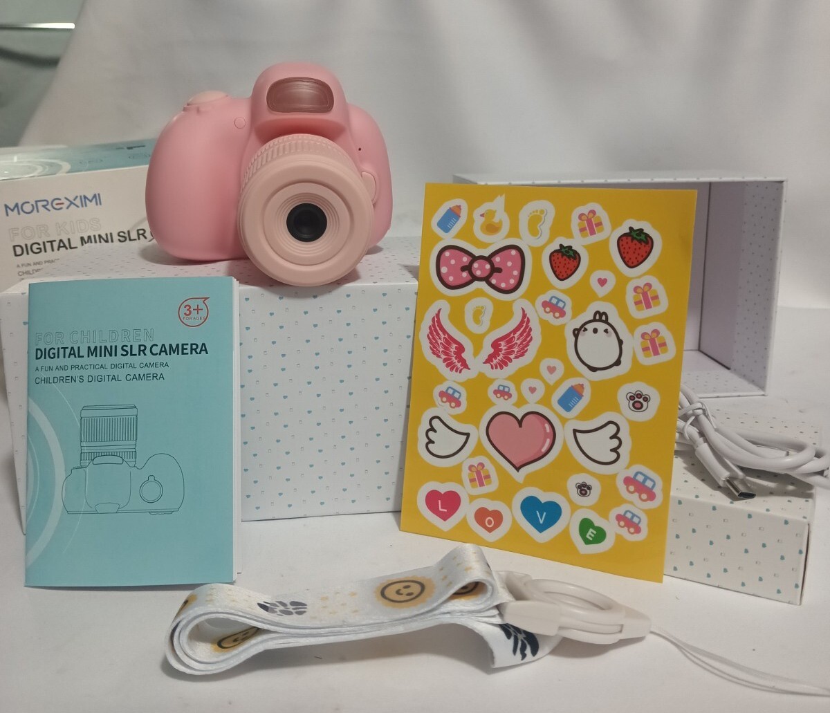 как выглядит Moreximi Pink Built-in Flash IPS Screen Digital Mini SLR Camera For Kids Ages 3 фото