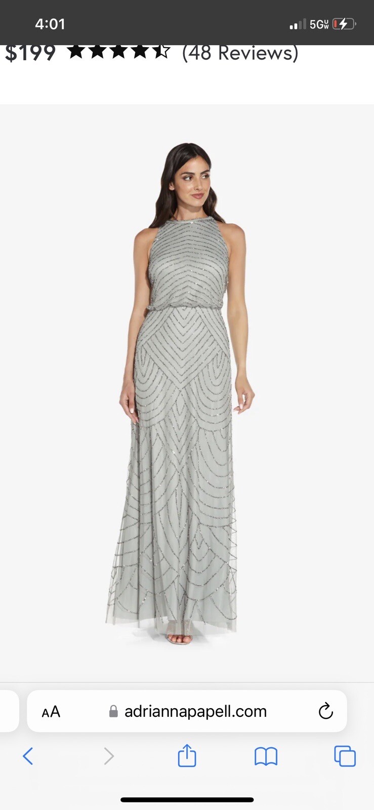 как выглядит Adrianna Papell Art Deco Beaded Blouson Gown Blue Mist фото