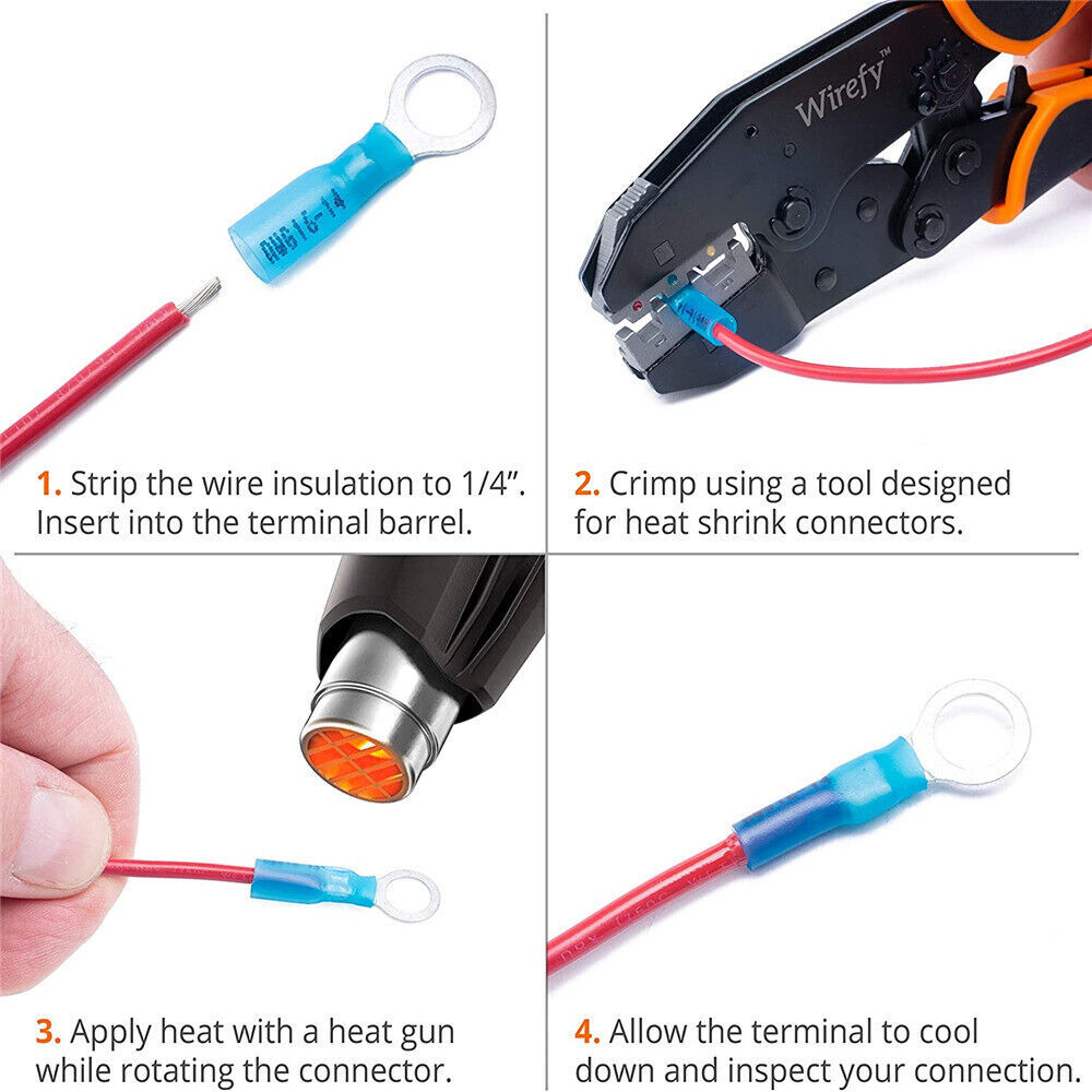 50-500PCS Eyelet Wire Connectors 16-14 AWG 10 Blue Heat Shrink Ring Terminals