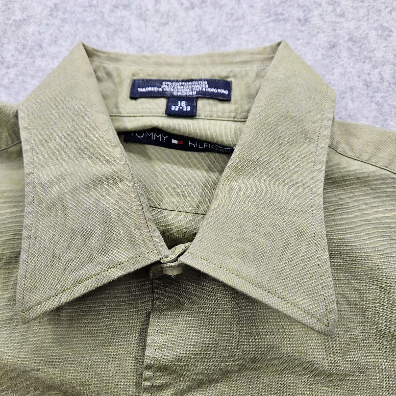 Tommy Hilfiger Men's 16 Khaki Green Button-Down Long Sleeves with Front Pockets