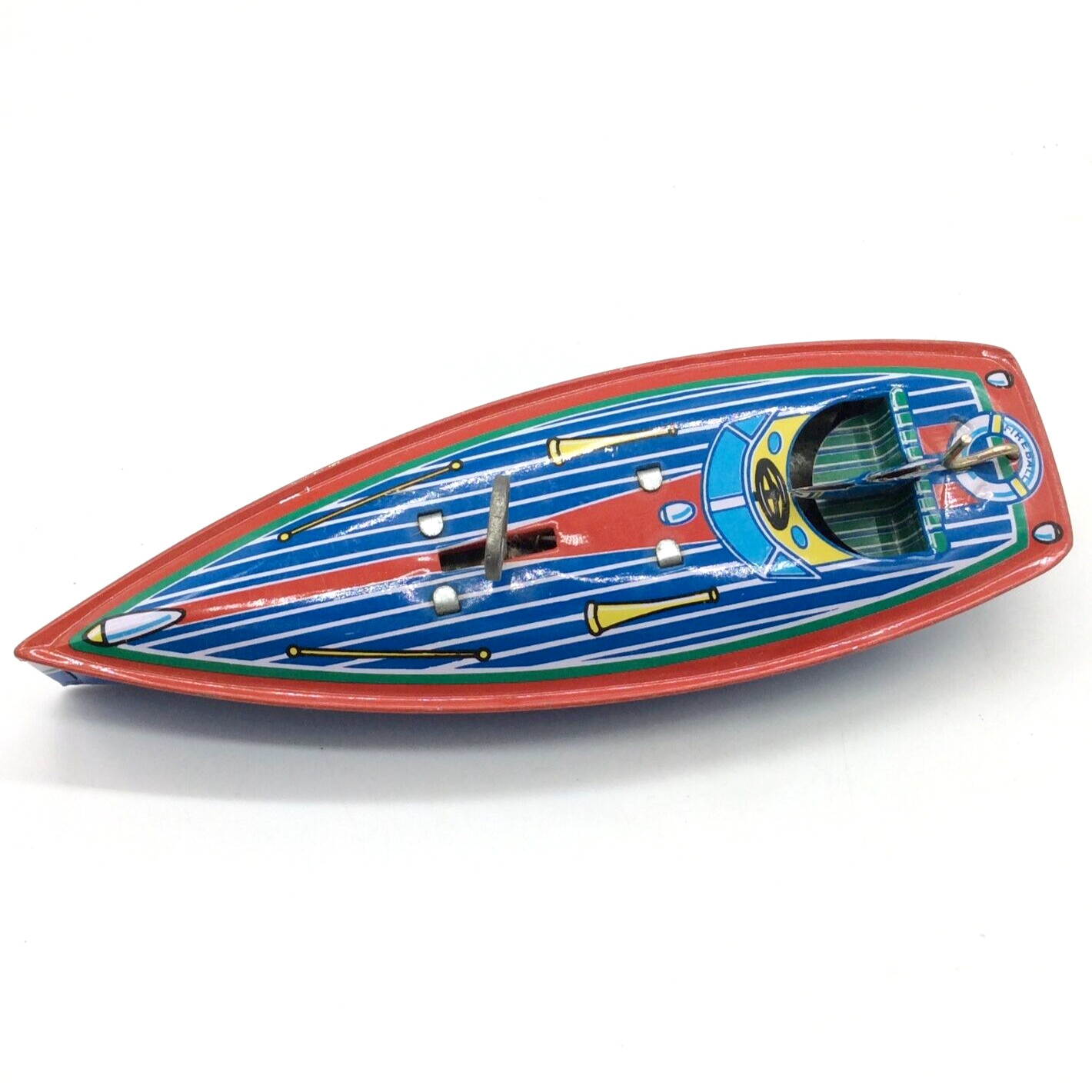 Vintage Schylling Collector Series FIREBALL SPEEDBOAT Tin Wind-Up Toy - AS-IS