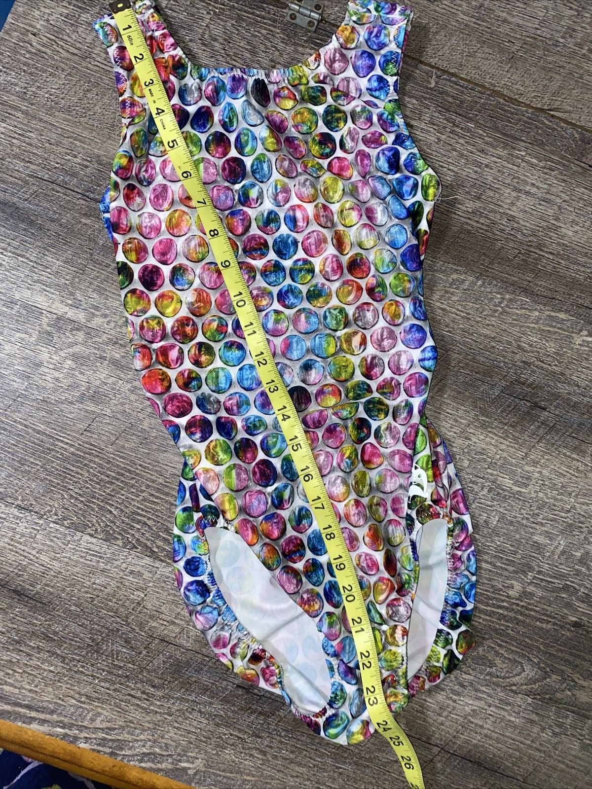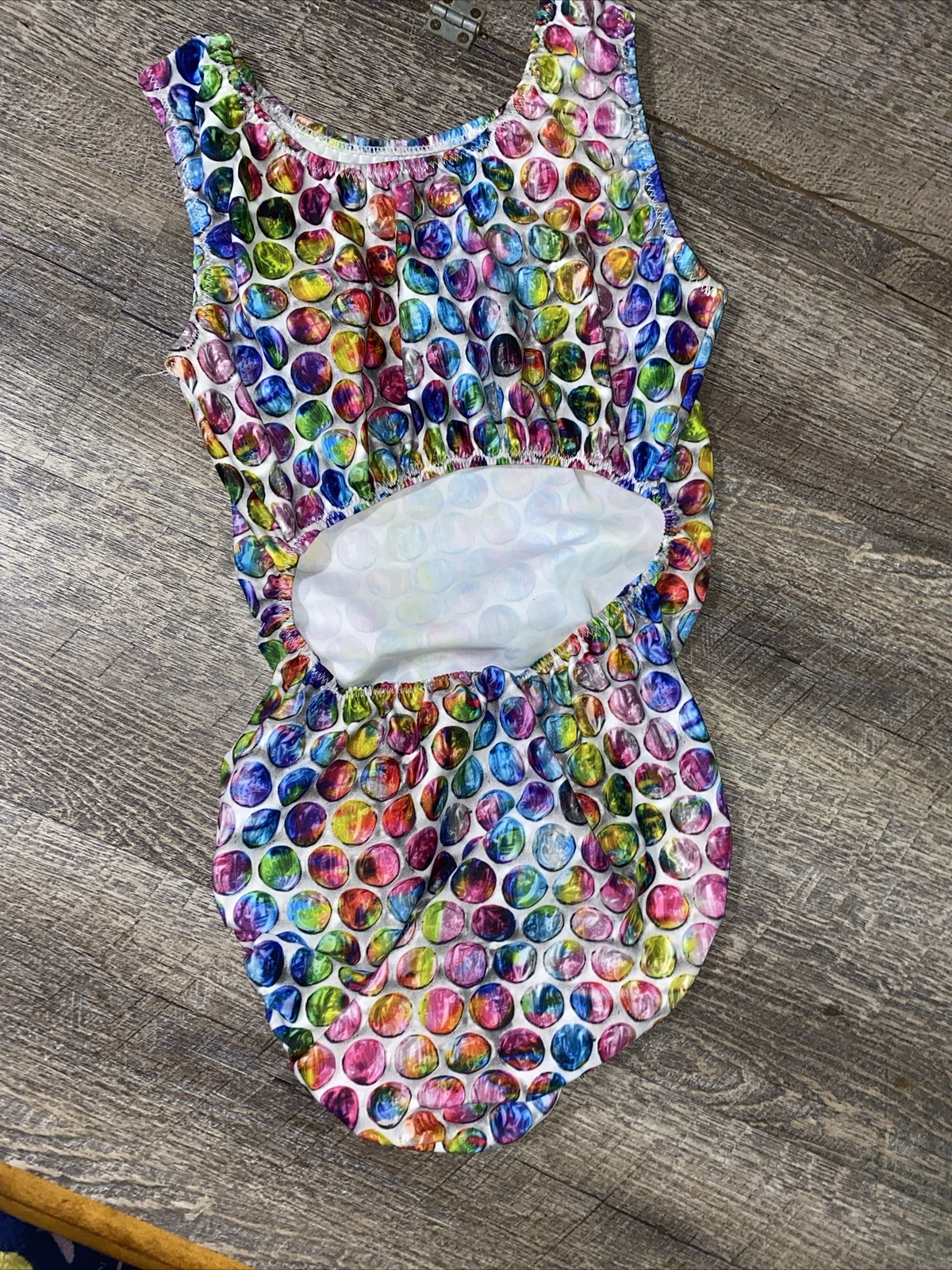 Foxy adult M rainbow bubble pop gymnastics leotard