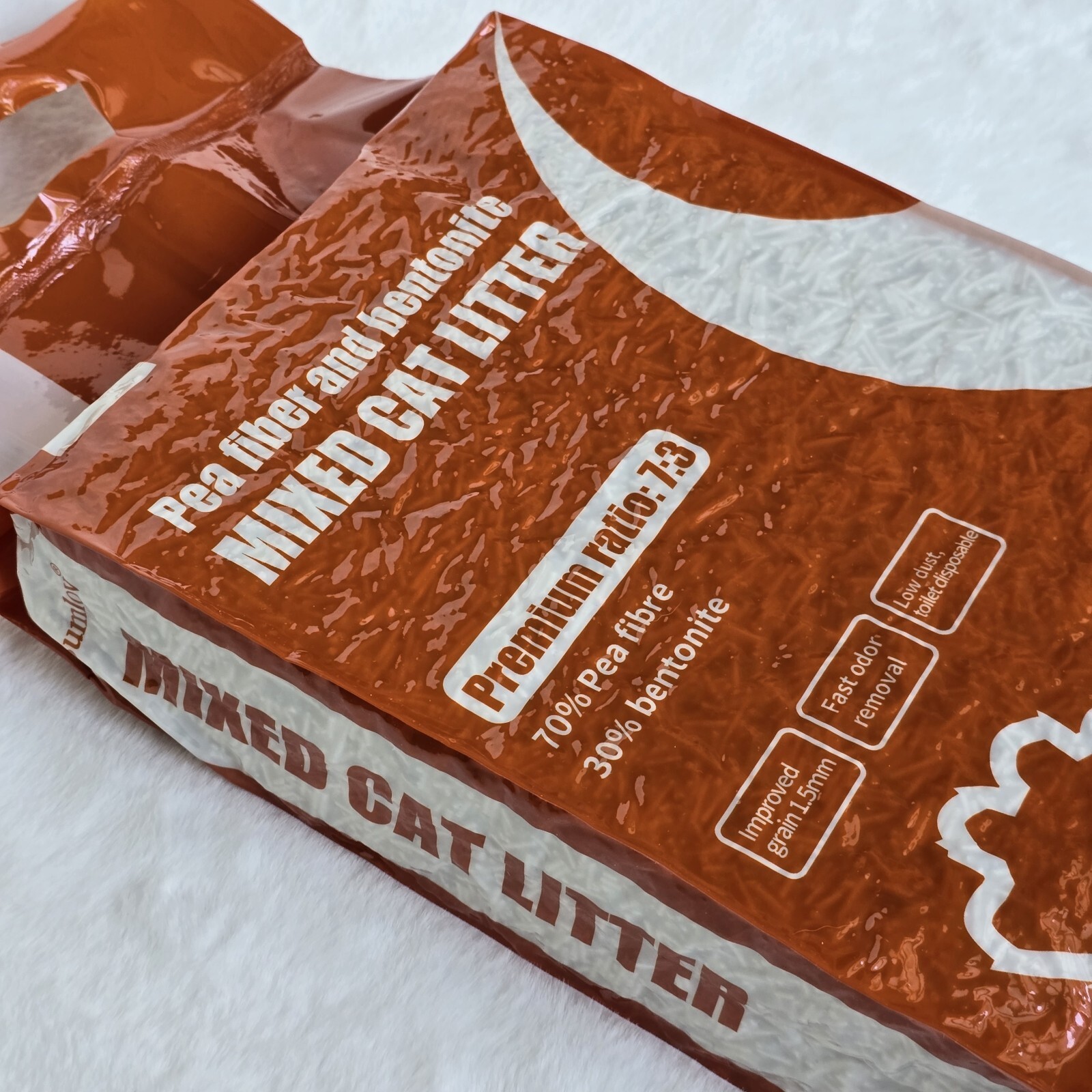 Pea Fiber Bentonite Mixed Cat Litter 5.5 Lbs Flushable Kitten Unscented Orange
