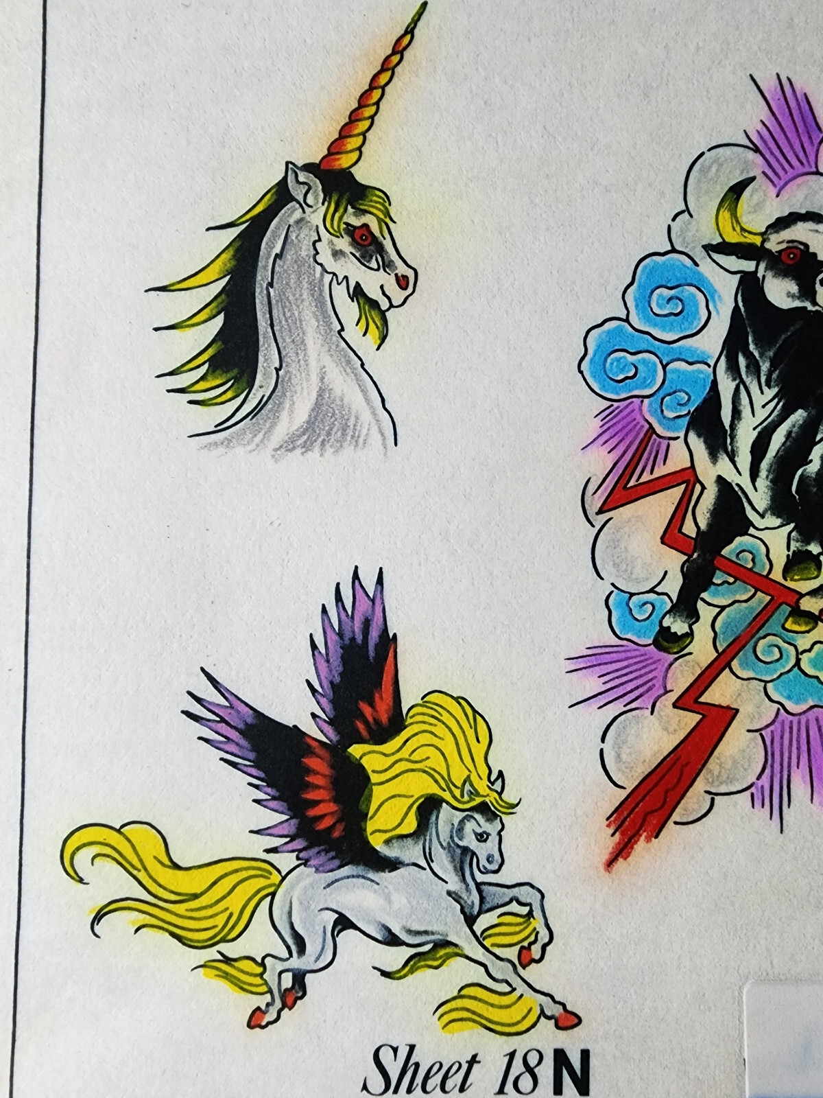 ORIGINAL Vintage 1970's Shop Used Don Nolan Tattoo Flash Sheet S R Bull 18N
