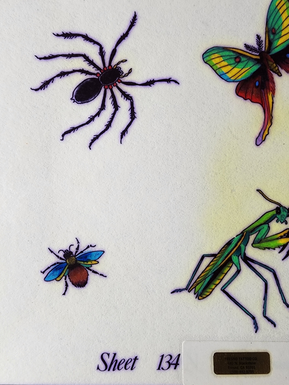 ORIGINAL Vintage 1970's Shop Used Don Nolan Tattoo Flash Sheet S R Insects 134N