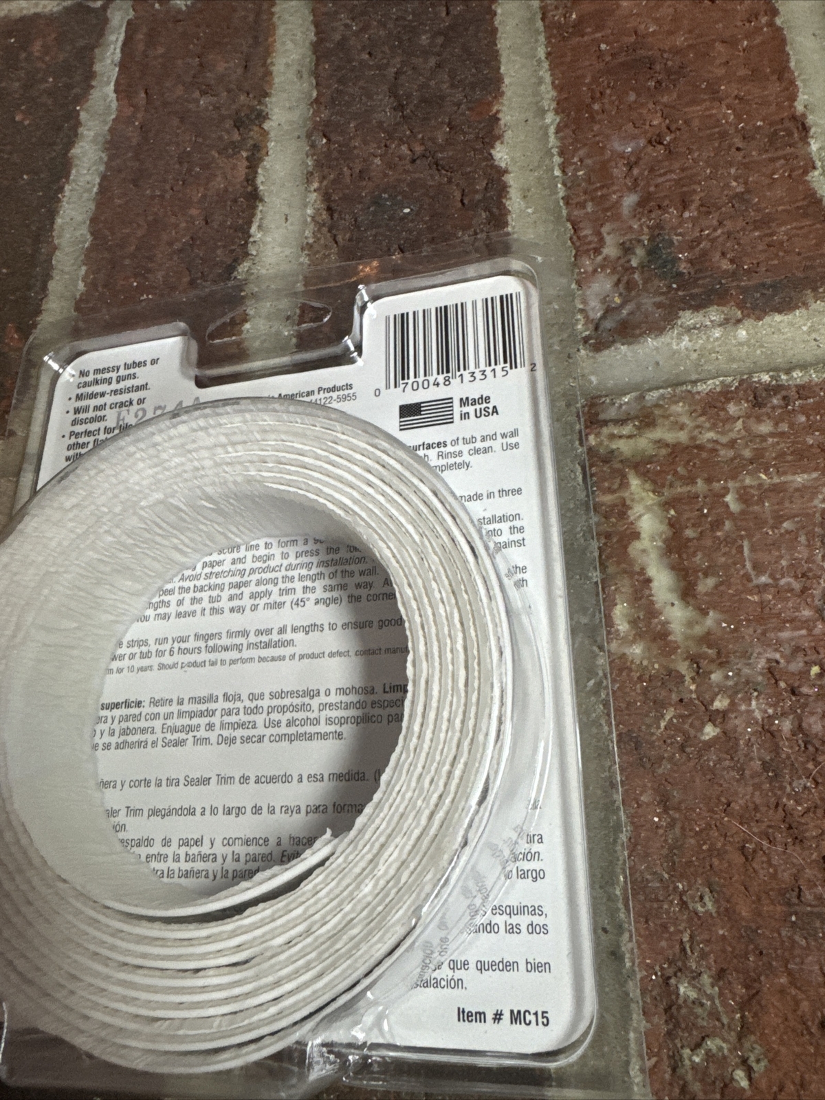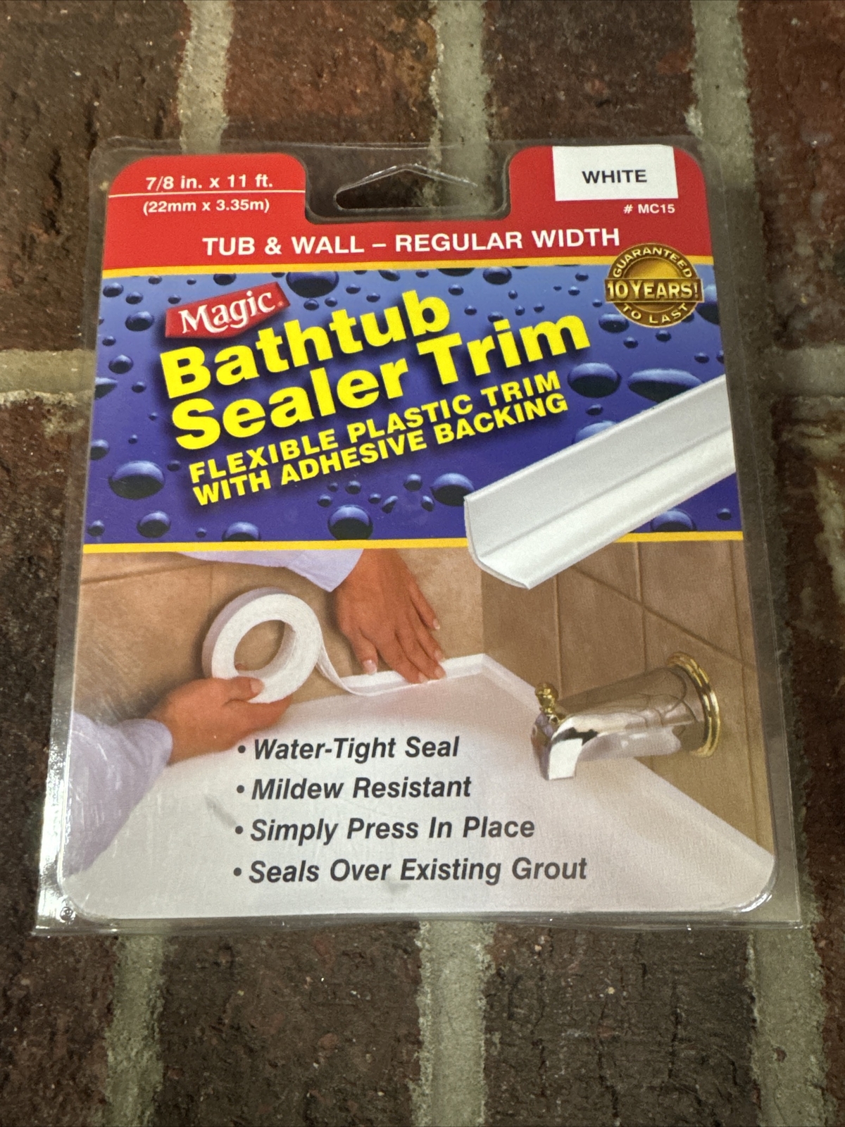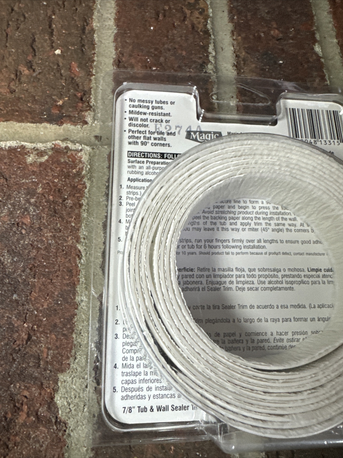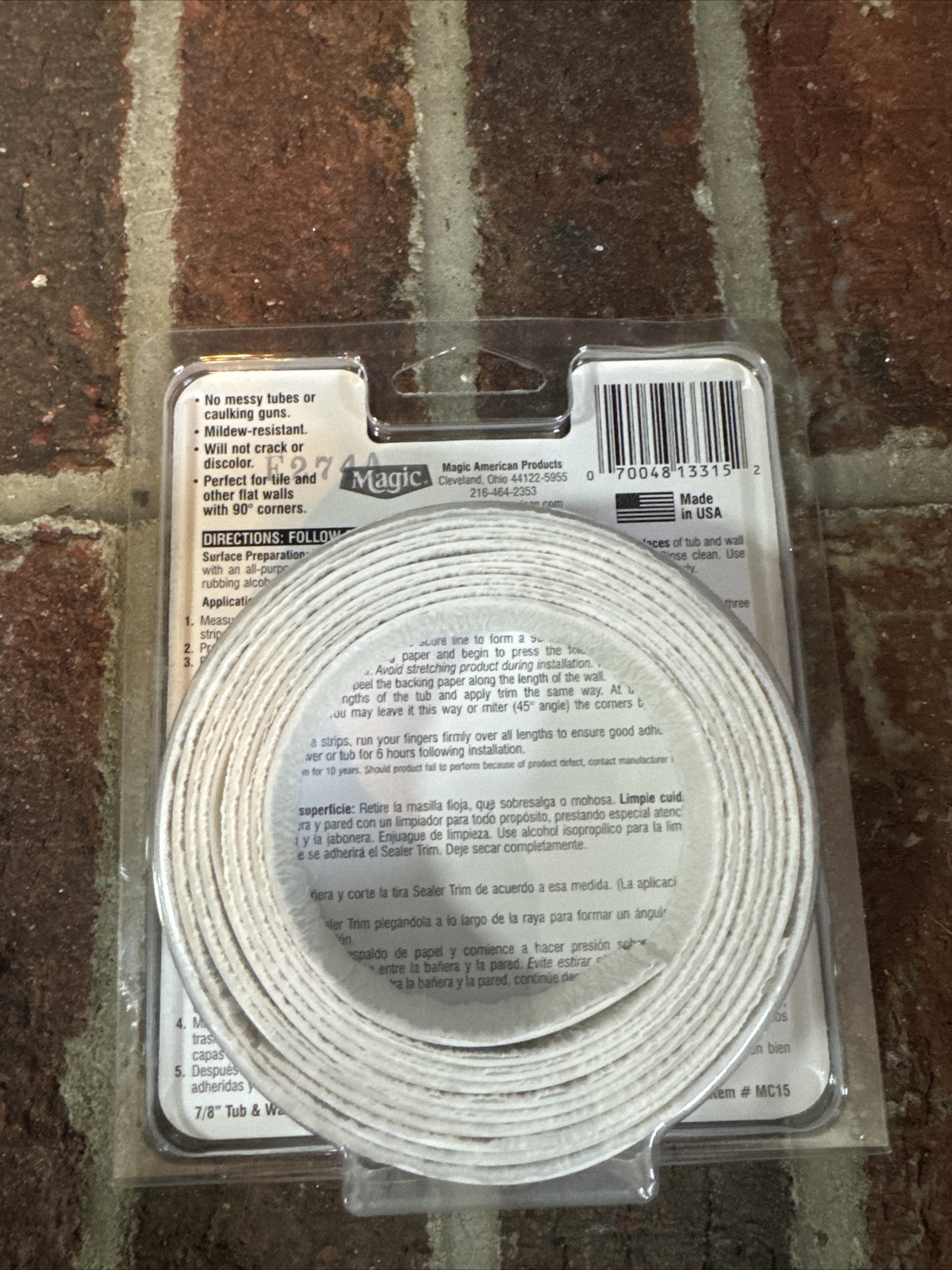 Magic Peel Stick Caulk Tub Wall WHITE 7/8 x 11' Bathtub Shower Water Seal