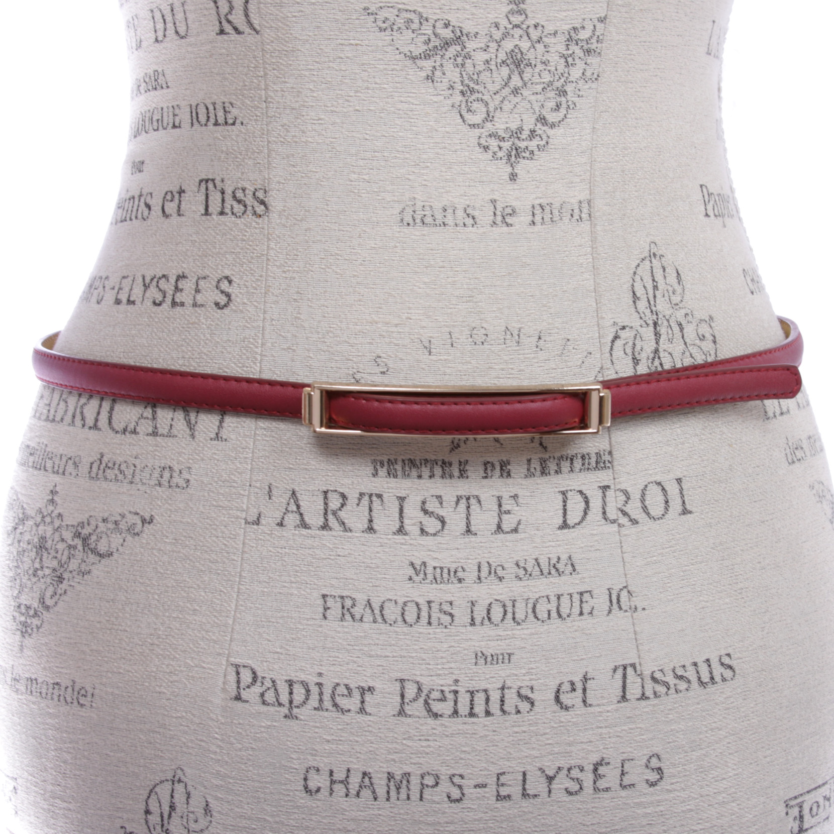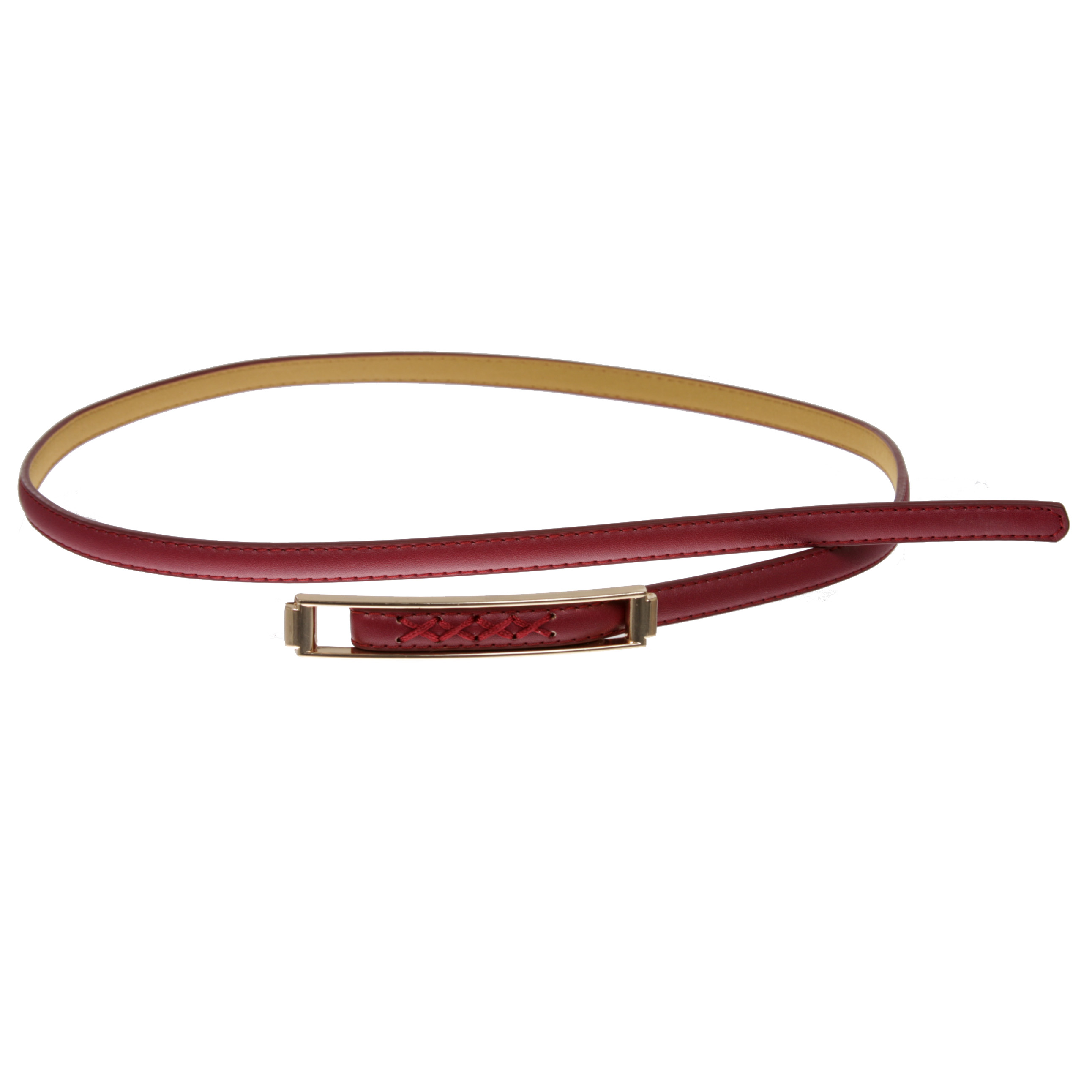 как выглядит Womens Thin Belts Skinny Faux Leather Stitch Belt with Gold Tone Buckle фото