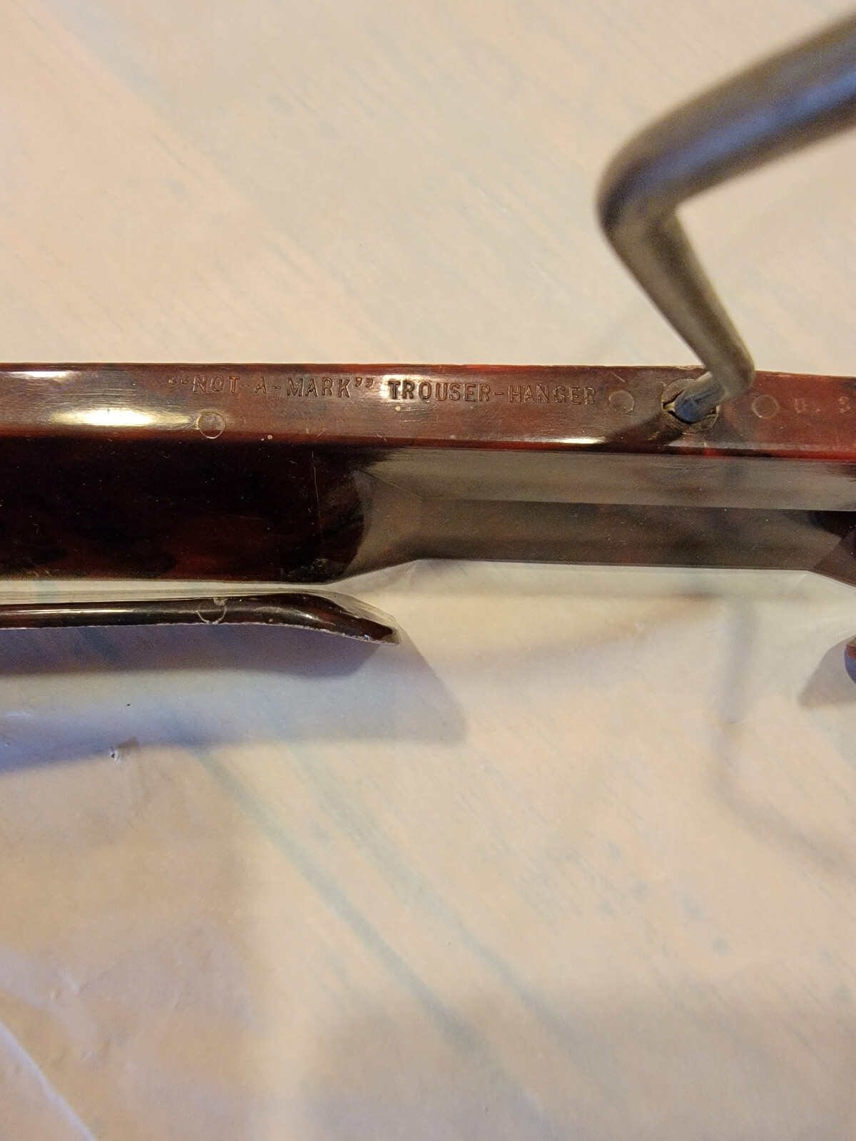 Vintage not a mark trouser hanger early plastic patent
