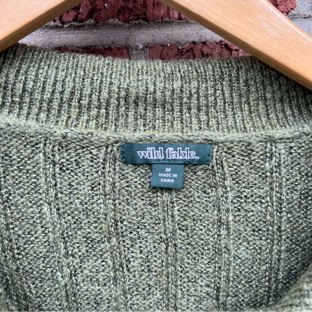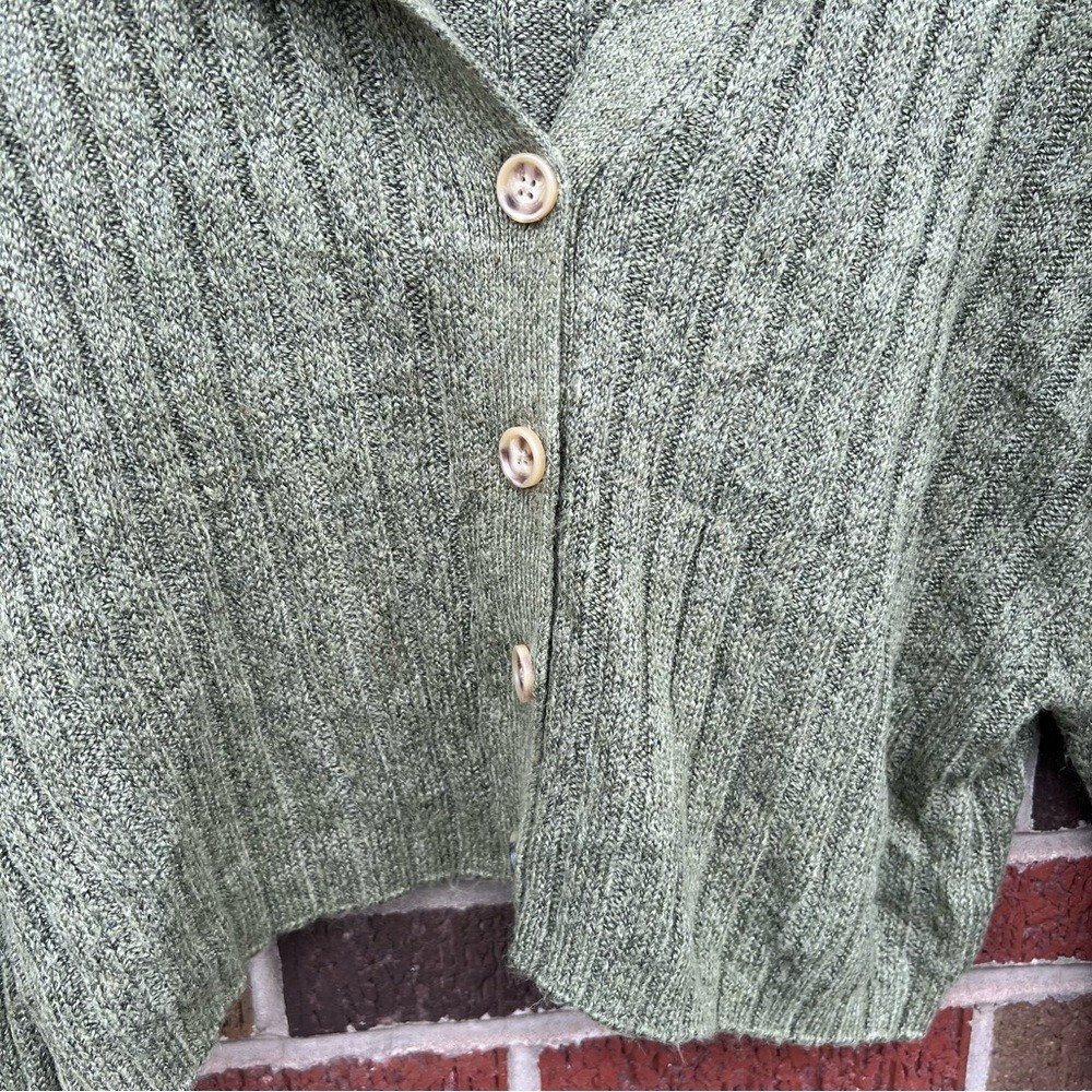 как выглядит Wild Fable Marled Green Ribbed Collared Button Down Cropped Sweater фото