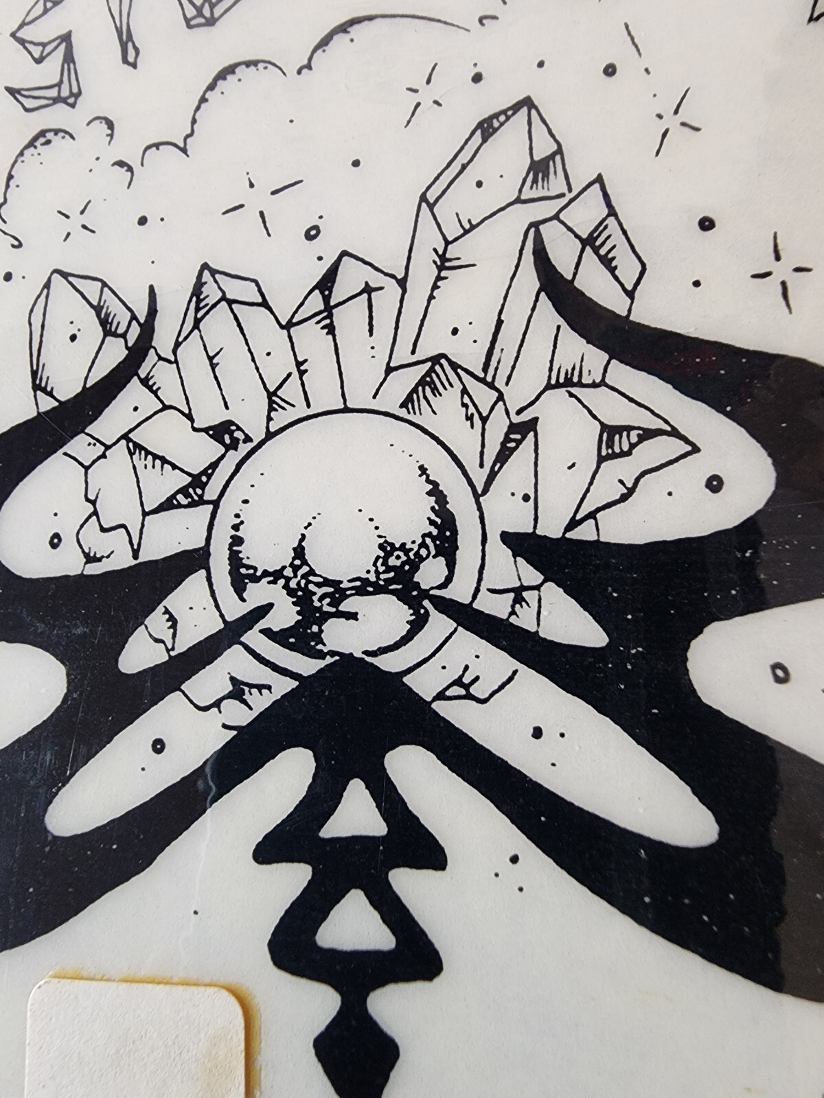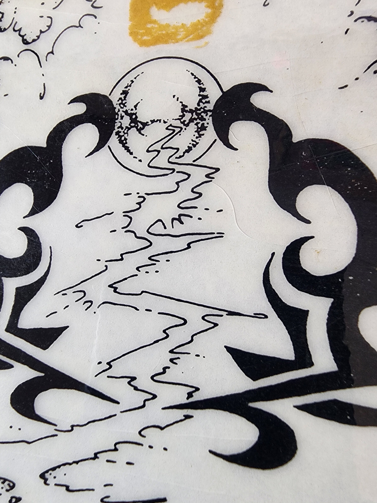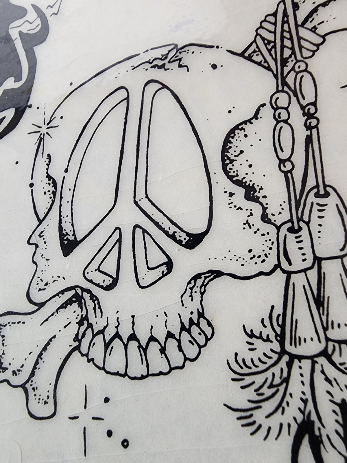 как выглядит ORIGINAL Vintage Bob Montagna 1990 Shop Used Tattoo Flash Sheet Tribal, Skull фото