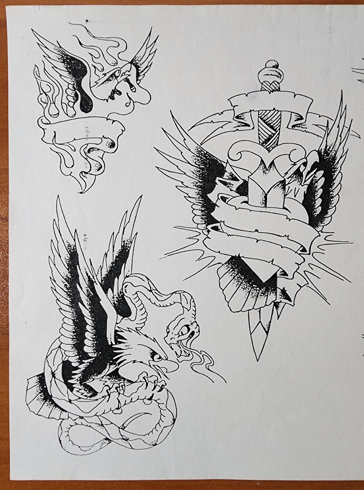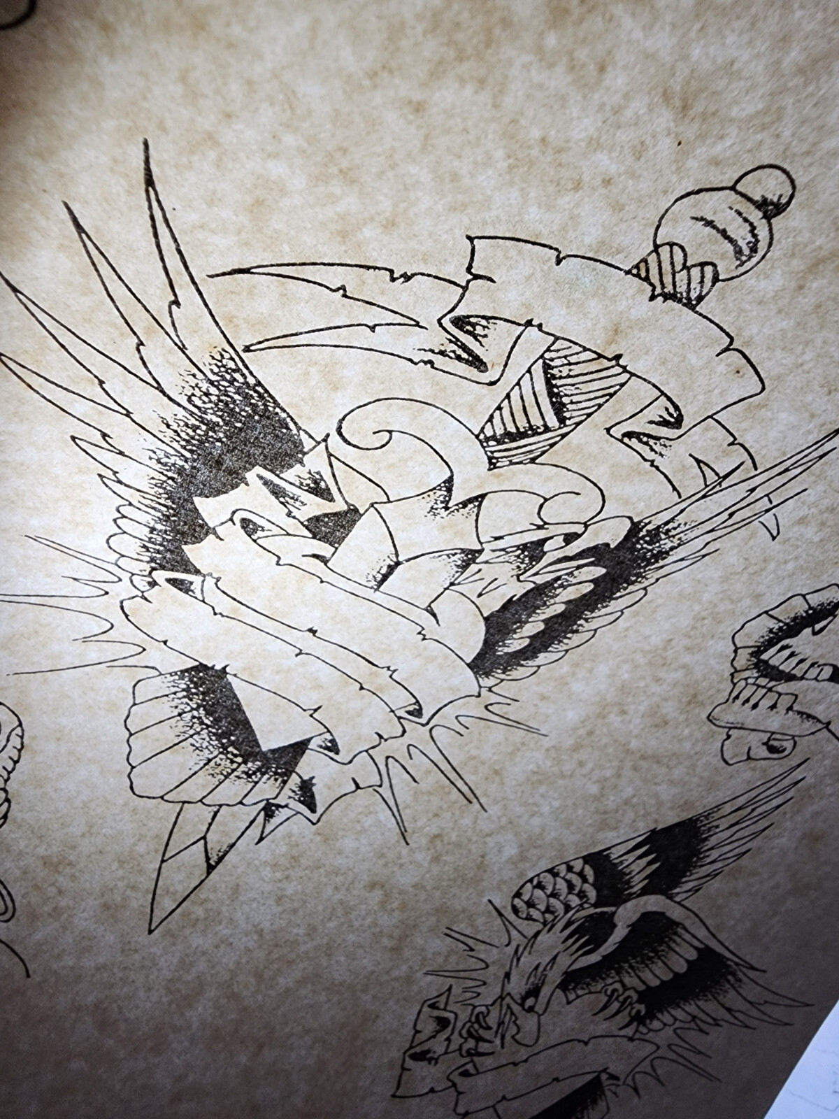 как выглядит VINTAGE Traditional 1980 Mike Rollo Malone Tattoo Flash Sheet Shop Used Eagles фото