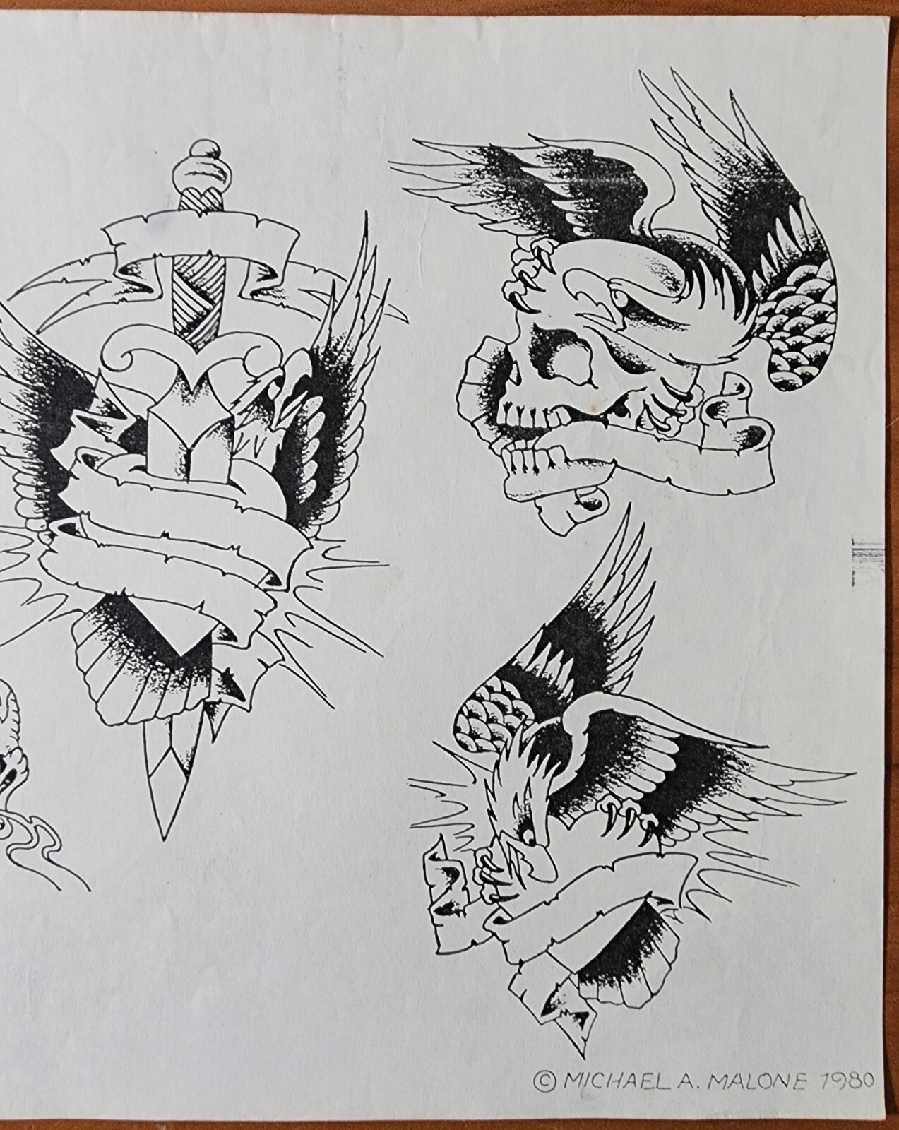 VINTAGE Traditional 1980 Mike Rollo Malone Tattoo Flash Sheet Shop Used Eagles