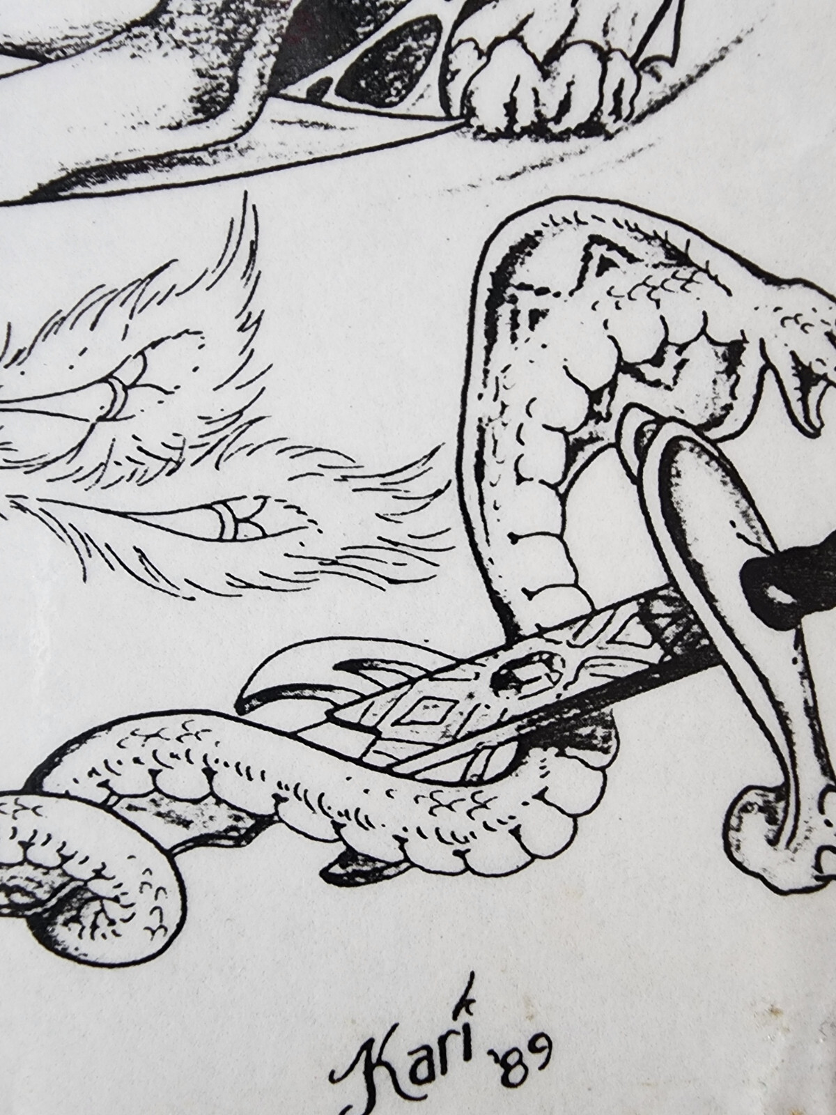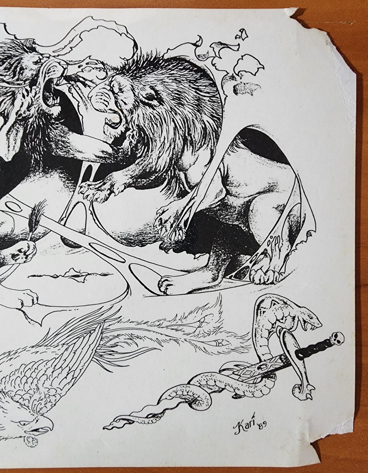 ORIGINAL 1989 Vintage Shop Used Kari Barba Tattoo Flash Sheet Lions Reaper Skull