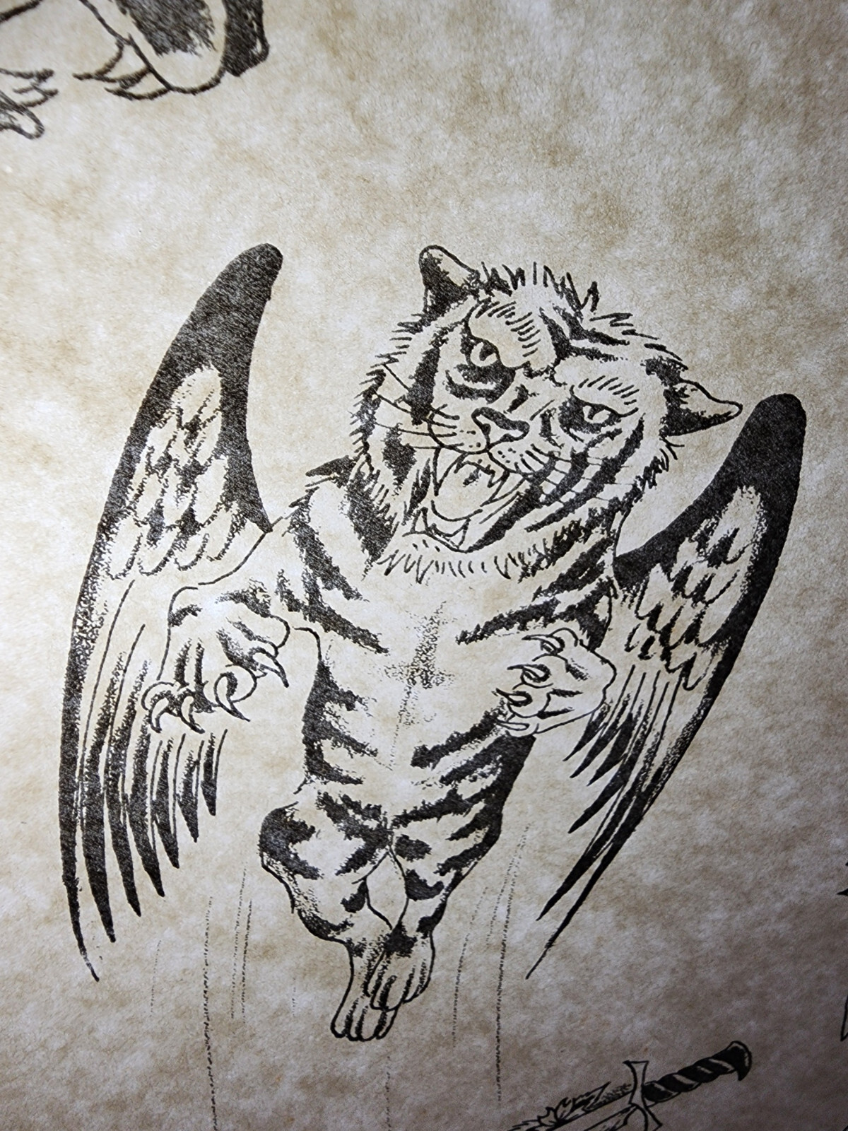 как выглядит VINTAGE Traditional 1970s Guideline L Weber Tattoo Flash Sheet Shop Used Tiger фото