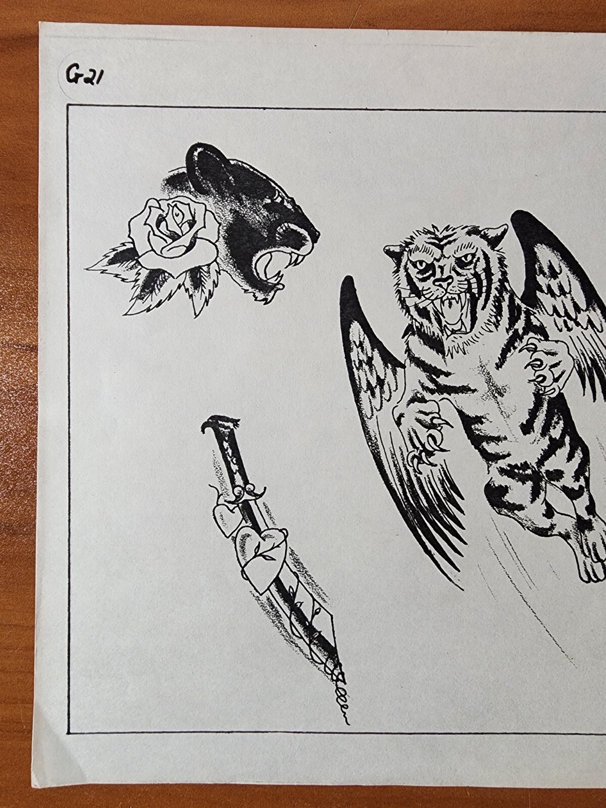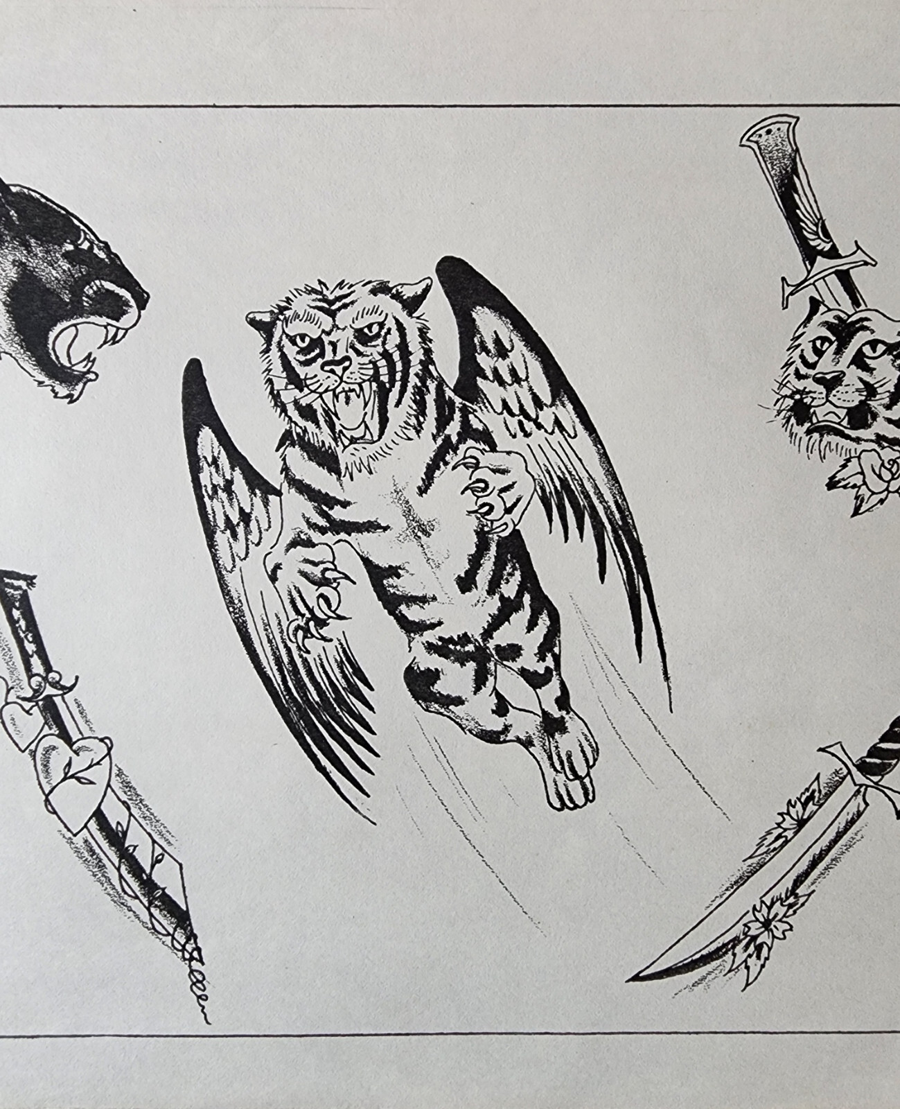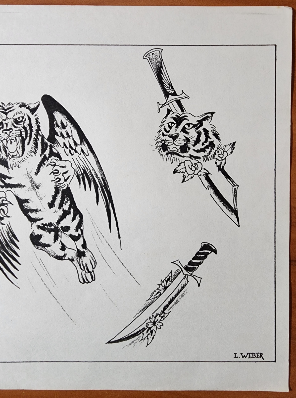 VINTAGE Traditional 1970's Guideline L Weber Tattoo Flash Sheet Shop Used Tiger