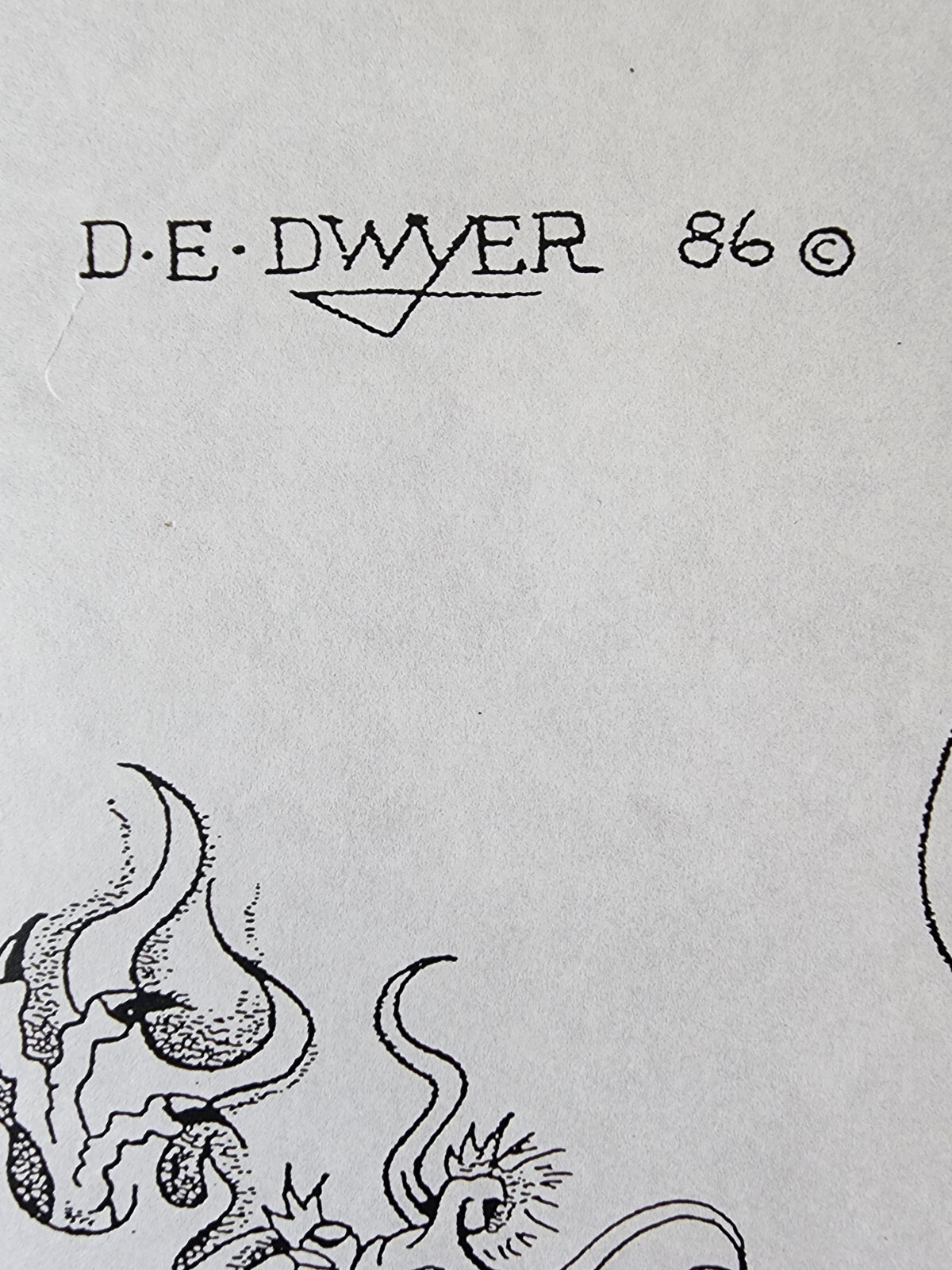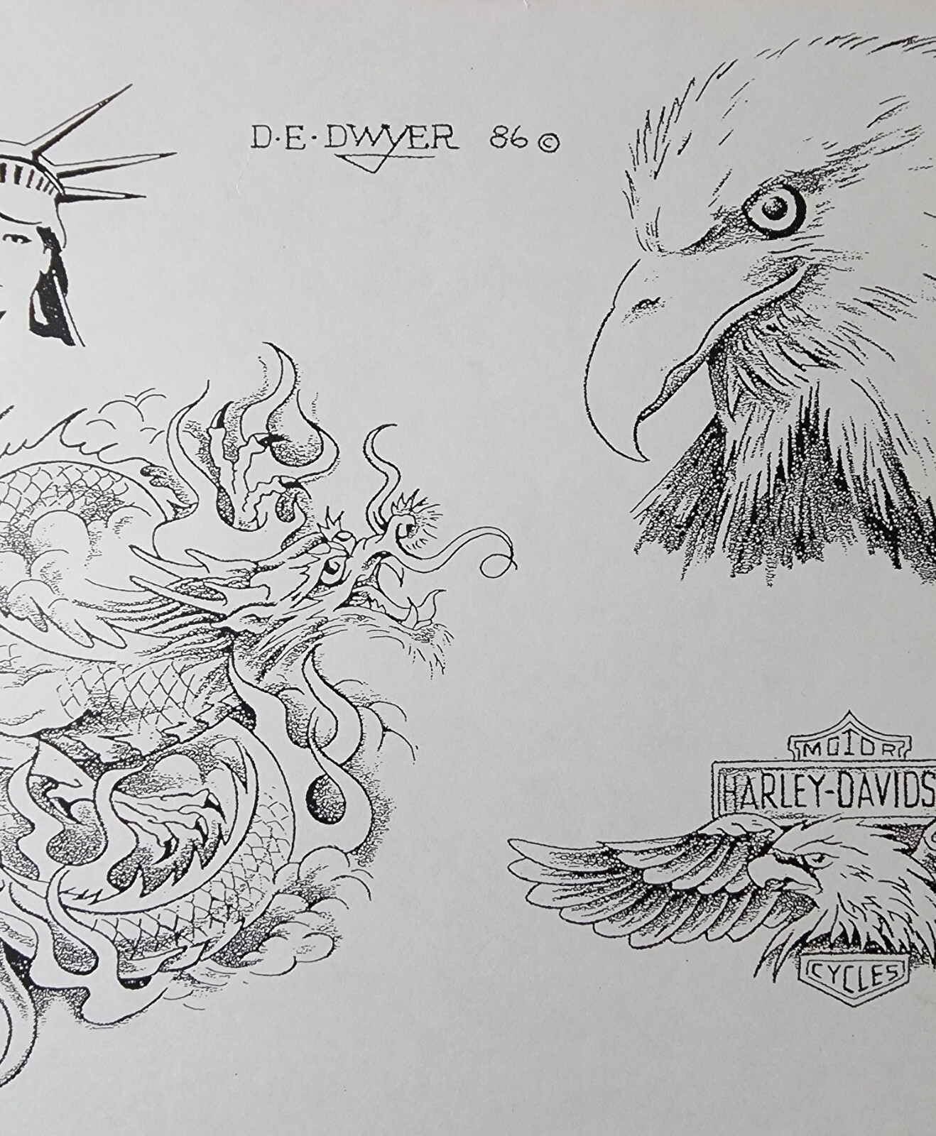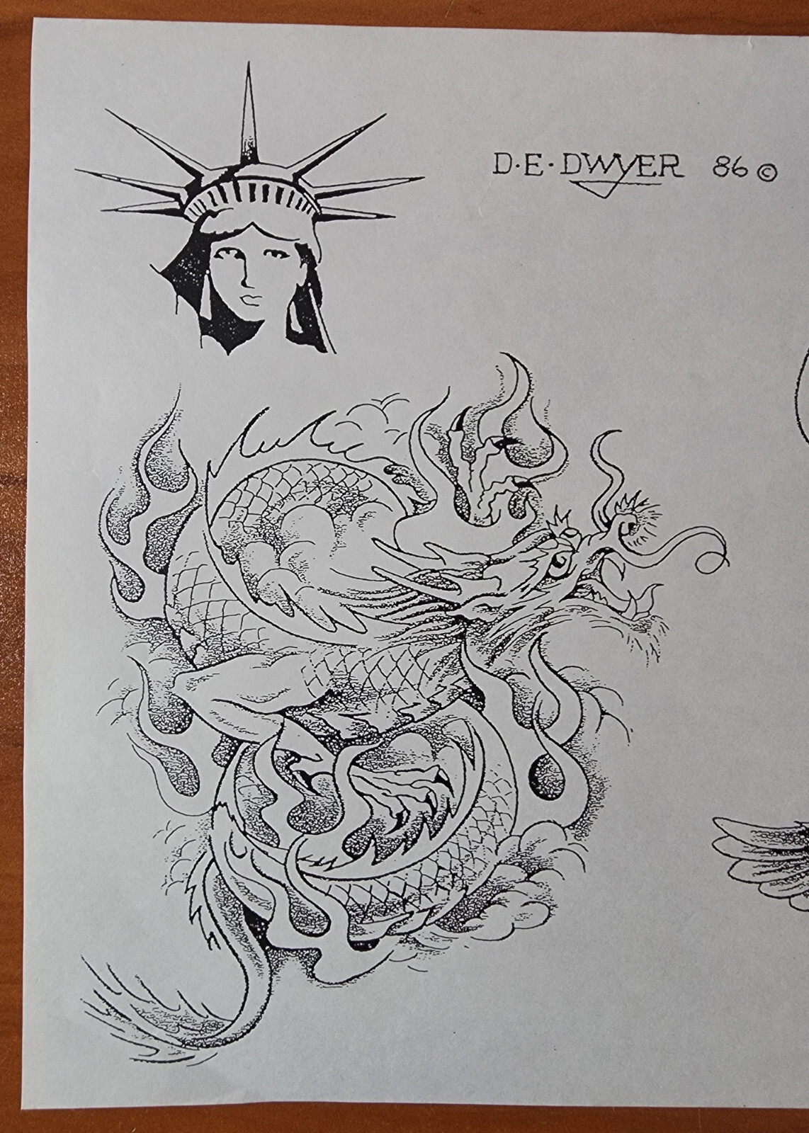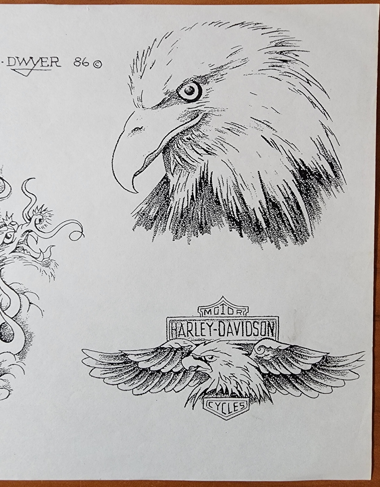 VINTAGE Traditional 1986 Dennis D.E Dwyer Tattoo Flash Sheet Shop Used Eagle USA