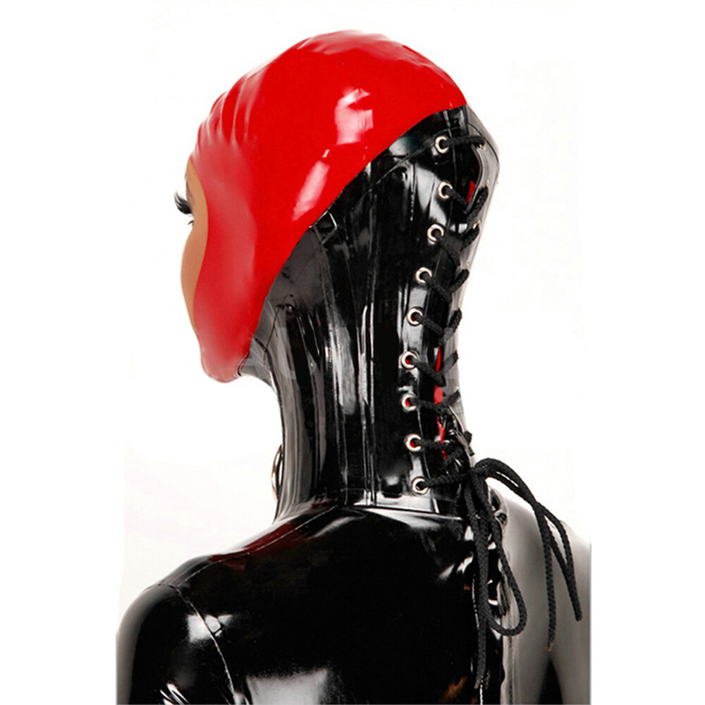 Latex Rubber Hood Mask with Adjustable Neck Corset Twine Shackles BDSM Fetish