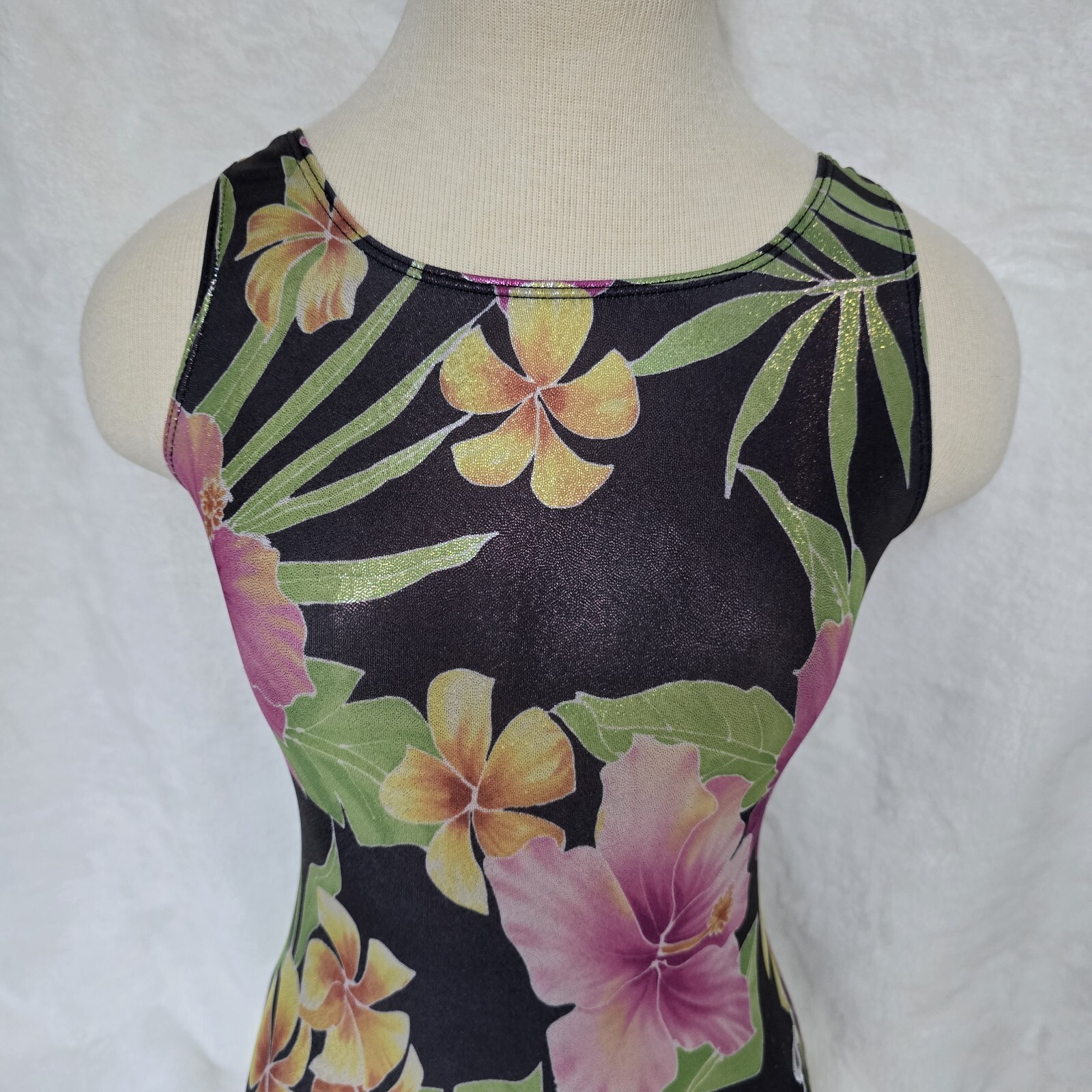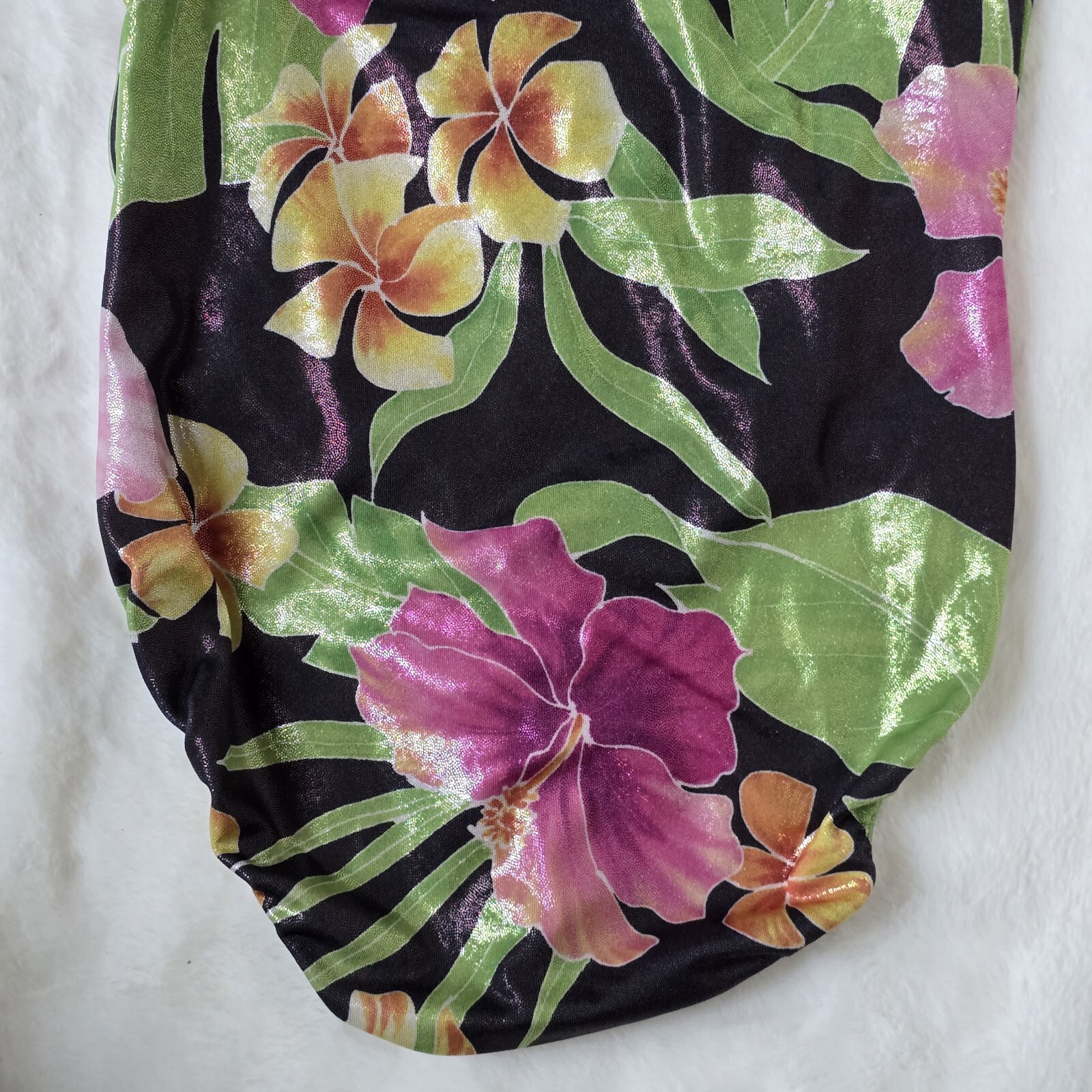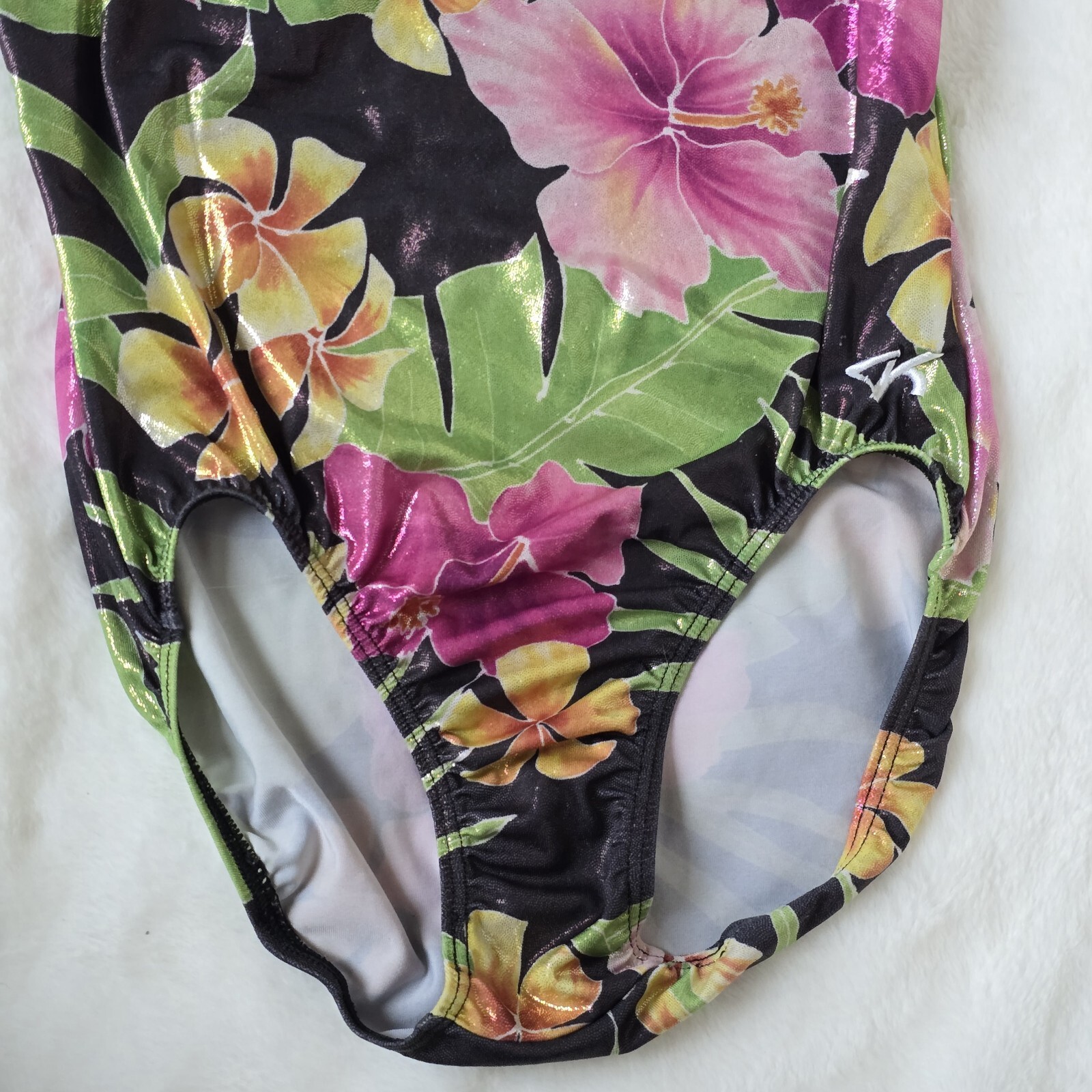 GK Elite Leotard AM Adult Medium Shiny Mystique Fabric Graphic Floral Tropical