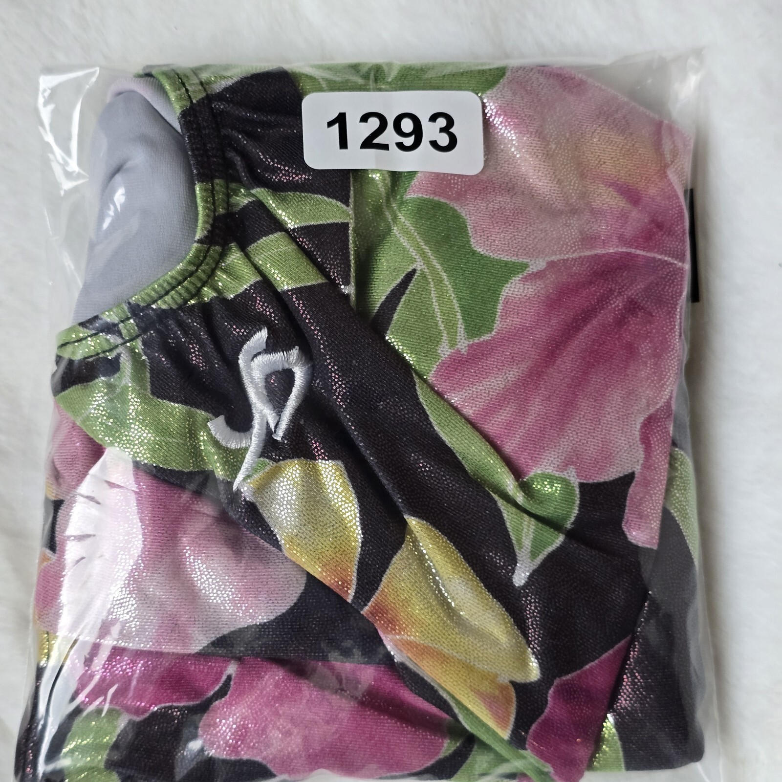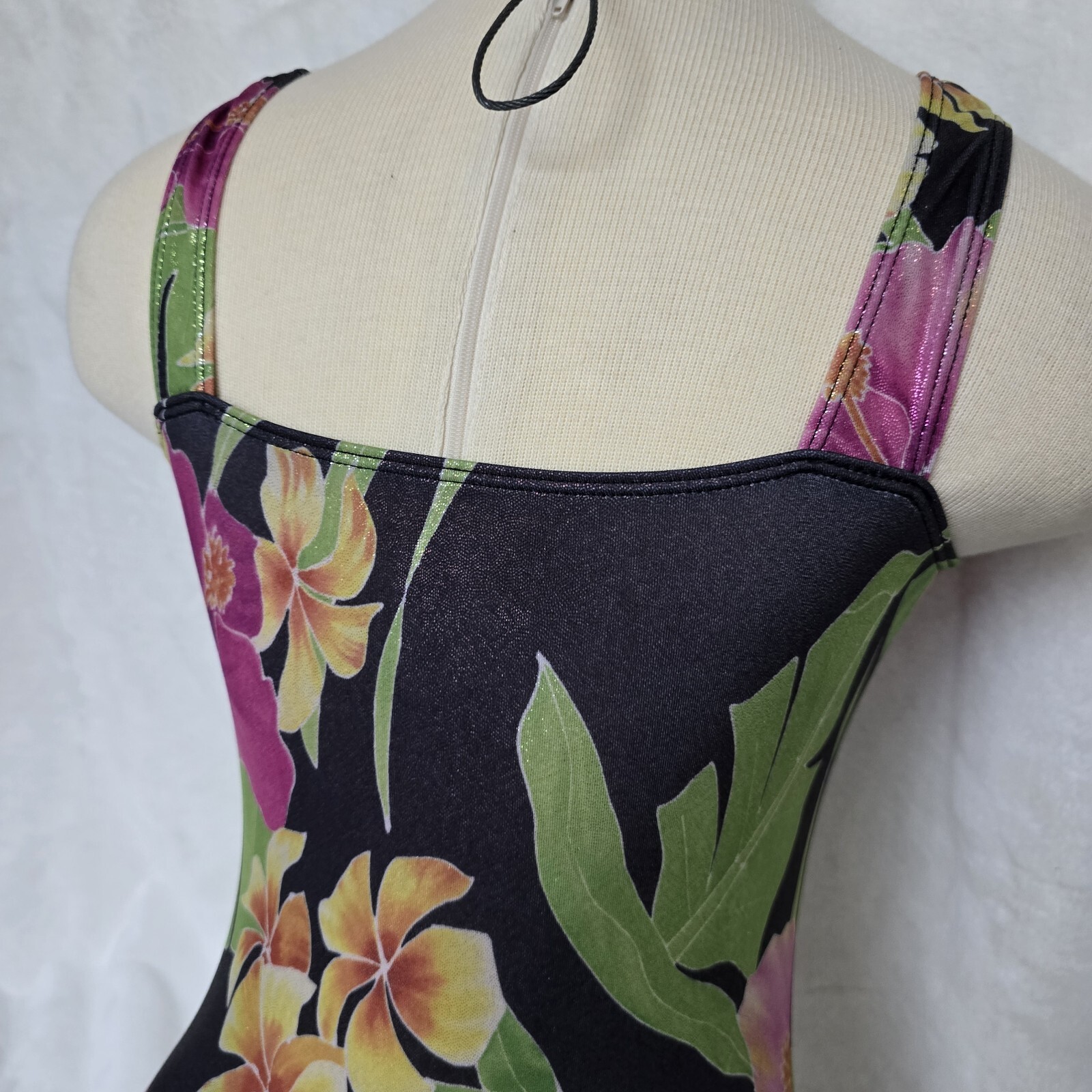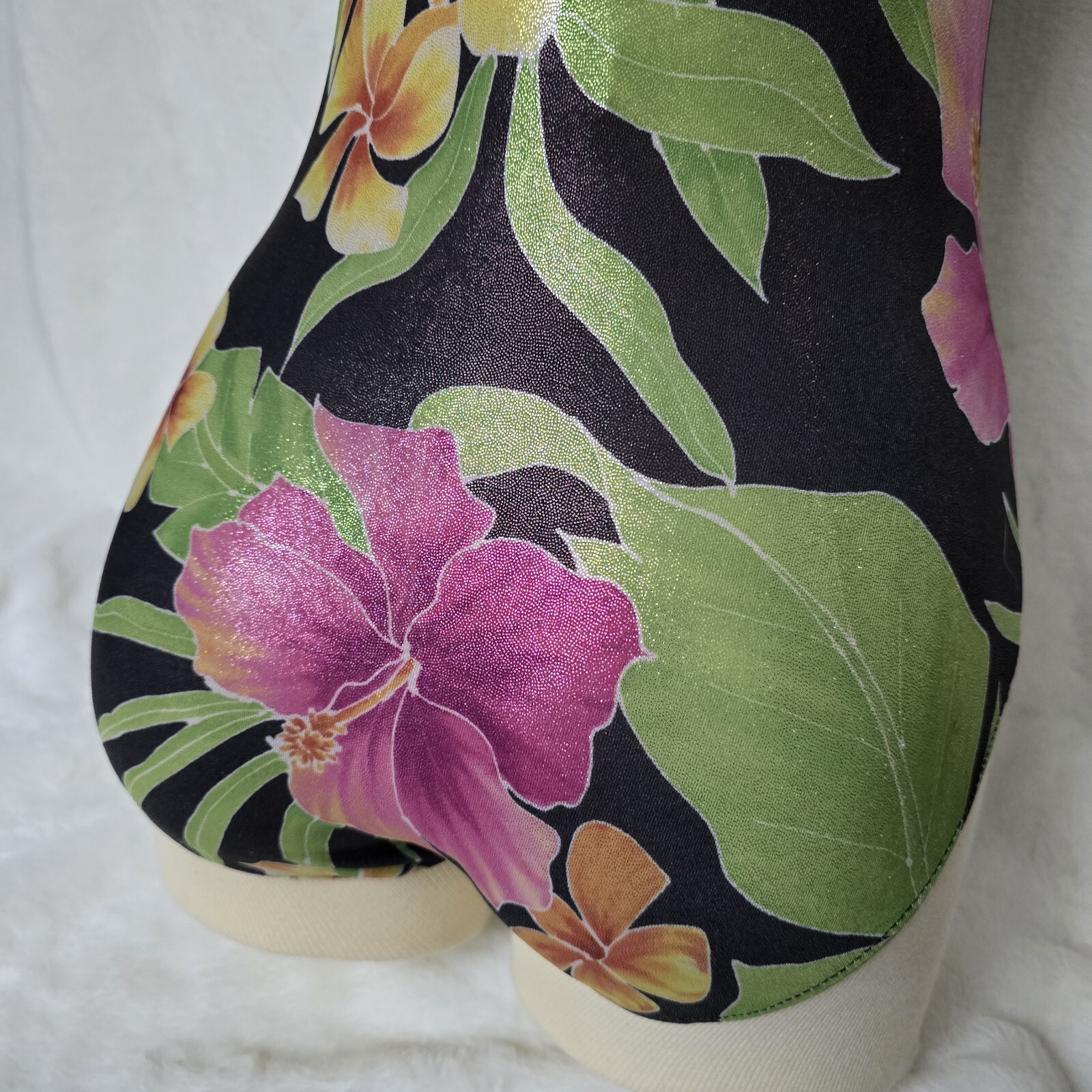 GK Elite Leotard AM Adult Medium Shiny Mystique Fabric Graphic Floral Tropical