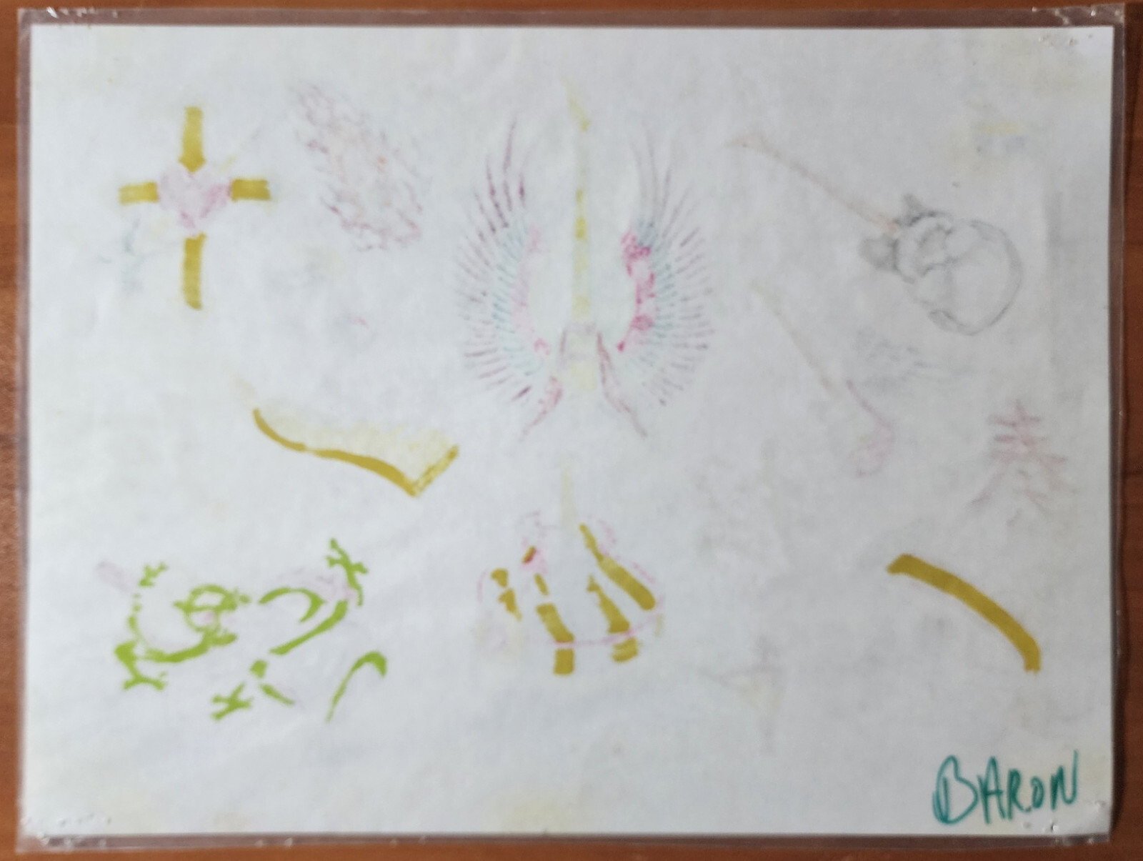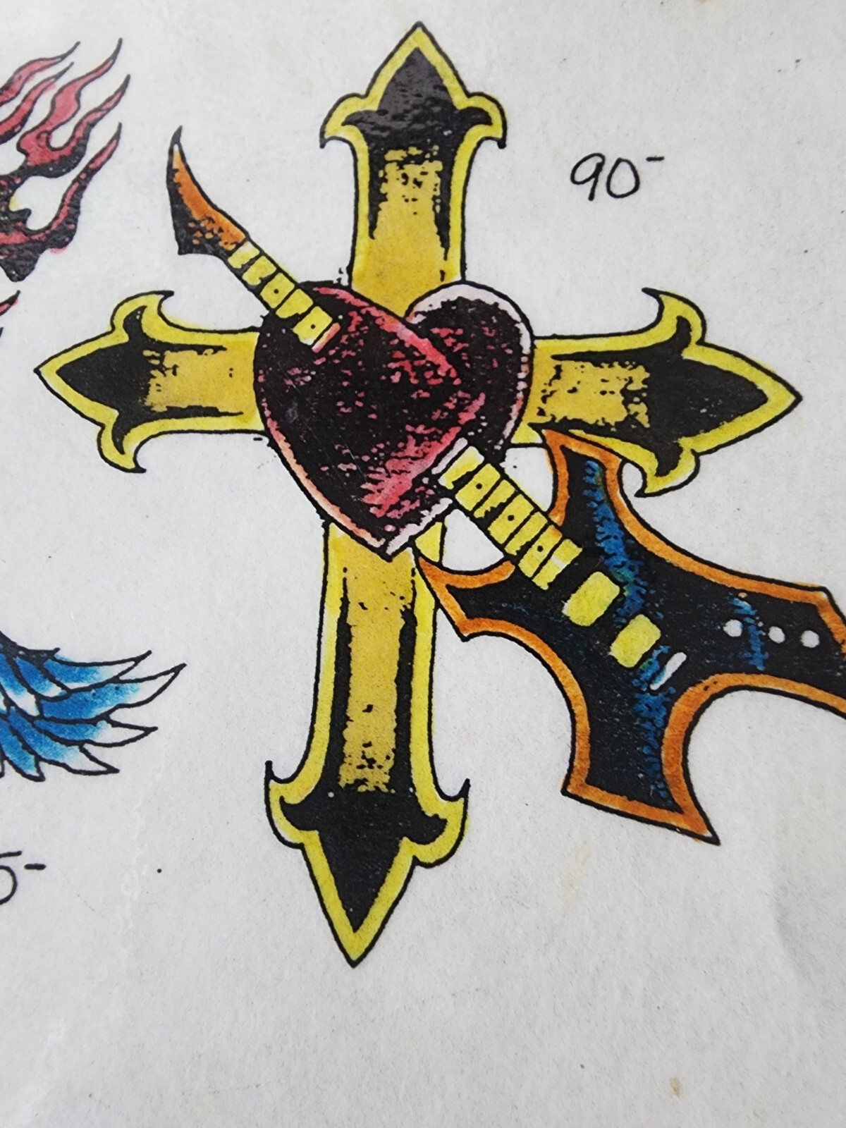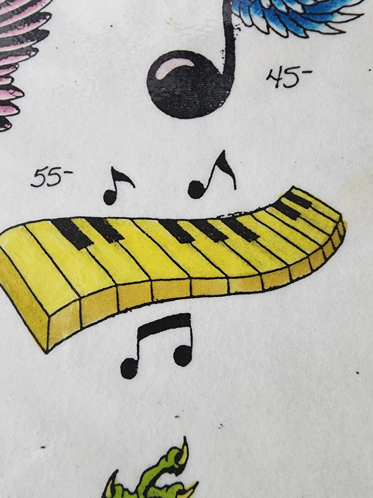 как выглядит ORIGINAL Vintage 89 Ken Cameron Shop Used Tattoo Flash Sheet HAND PAINTED Music фото