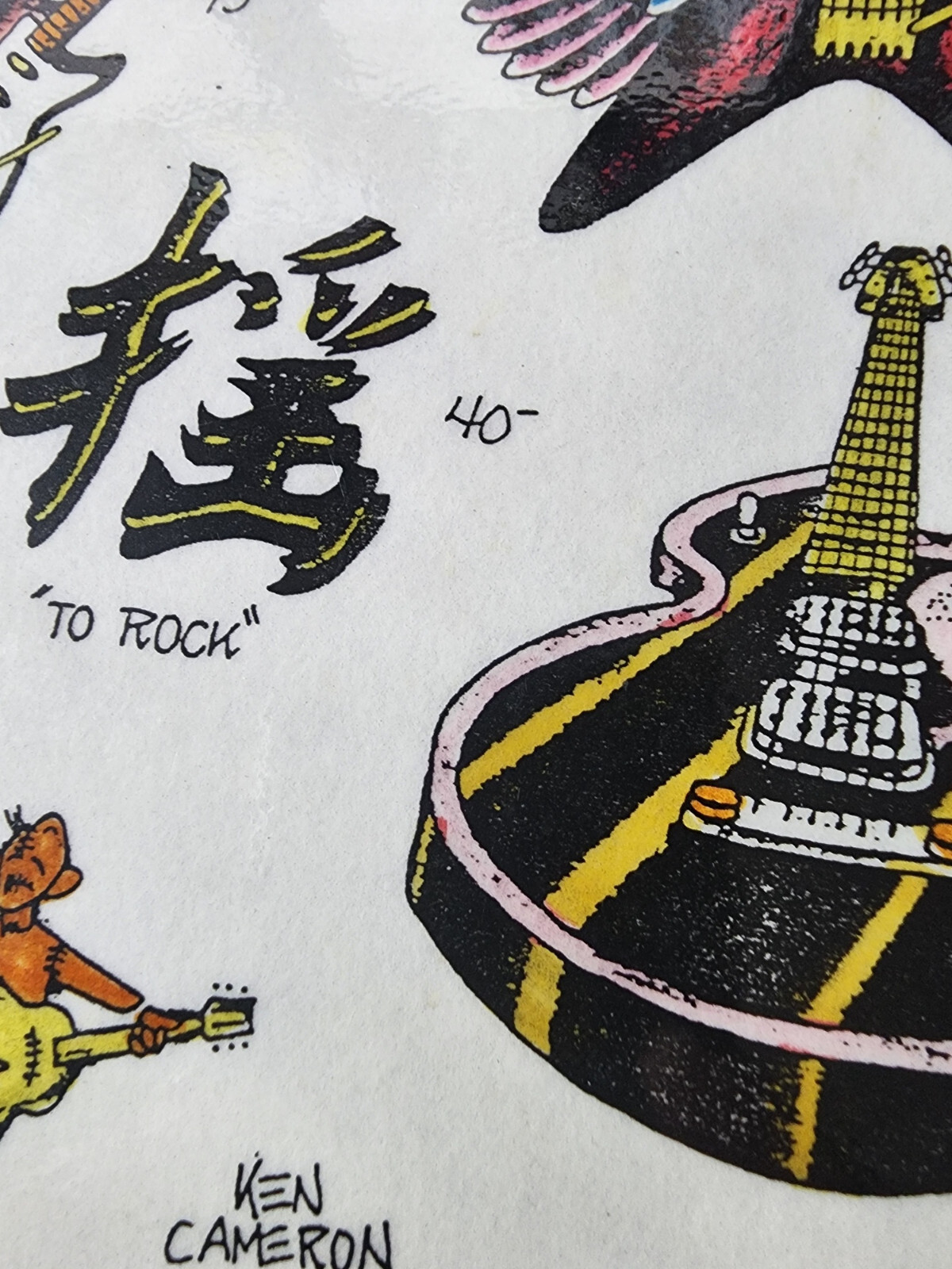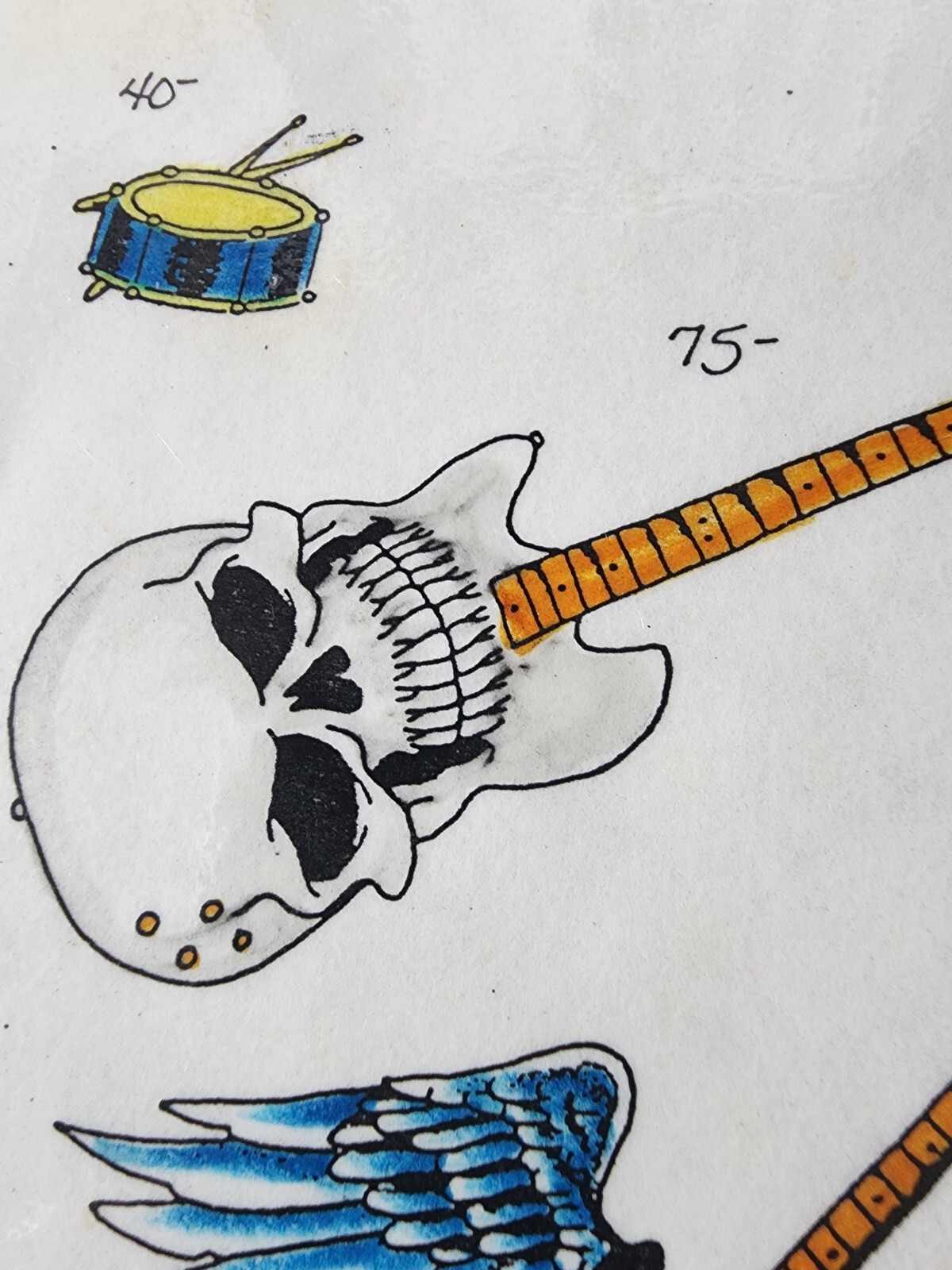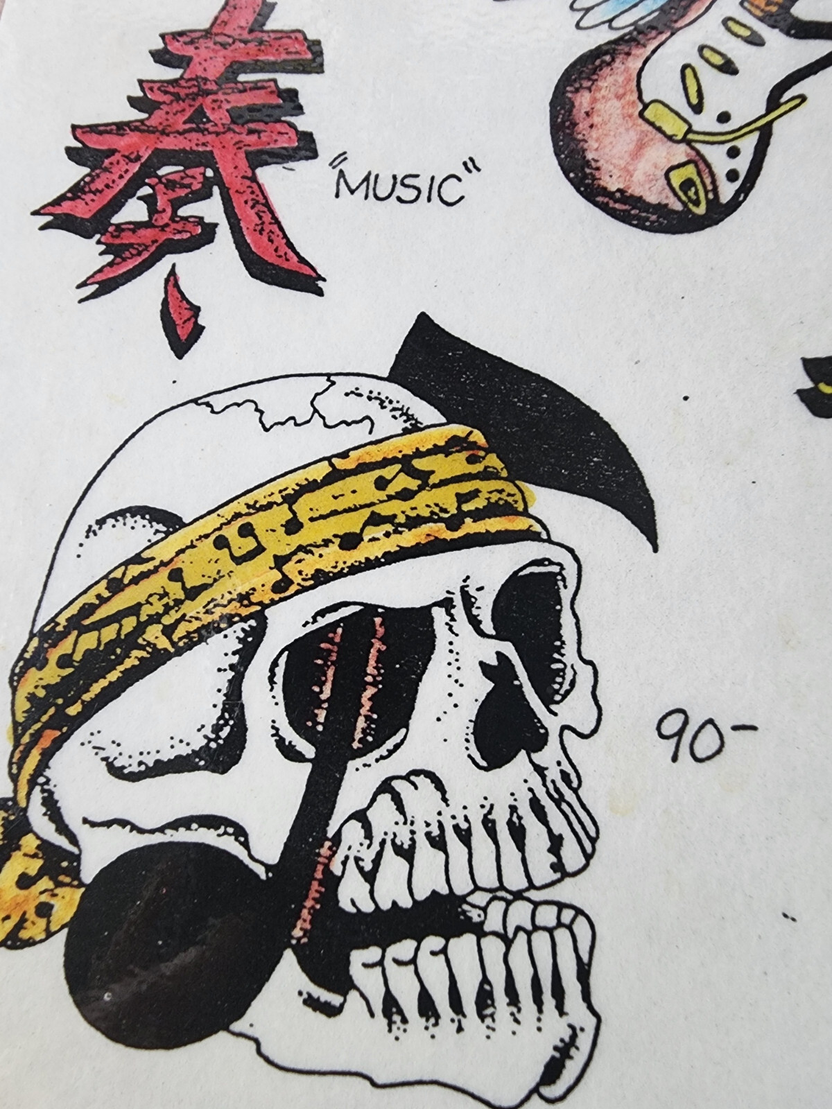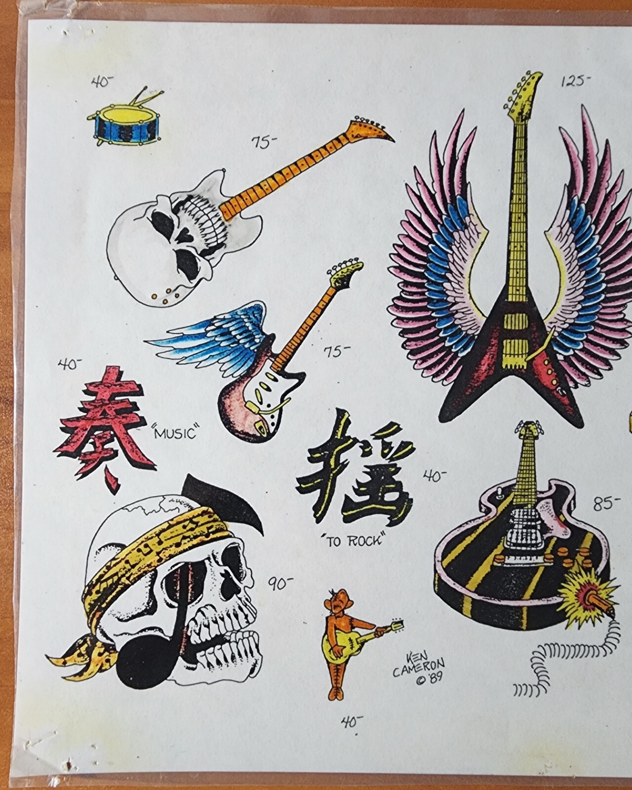 ORIGINAL Vintage 89 Ken Cameron Shop Used Tattoo Flash Sheet HAND PAINTED Music