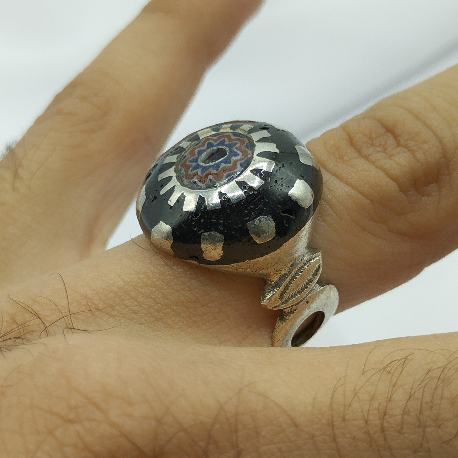 Tuareg Ring Tribal jewelry Africa silver ring set with chevron bead and black