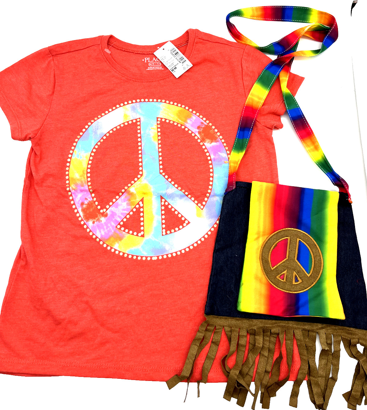 как выглядит NWT kids hippie costume peace shirt and bag фото