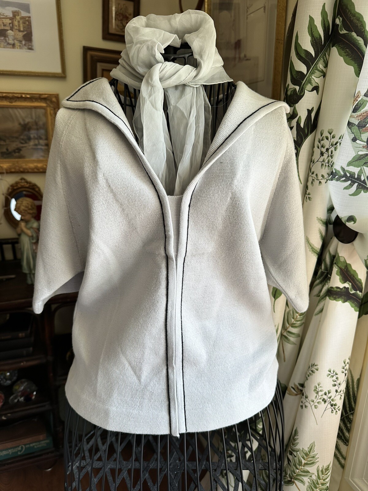 как выглядит VTG 80s Grey Knit Skirt Set XS w Scarf Lined Skirt фото