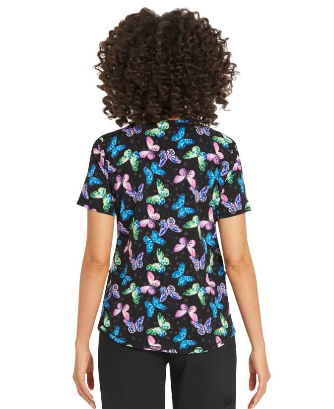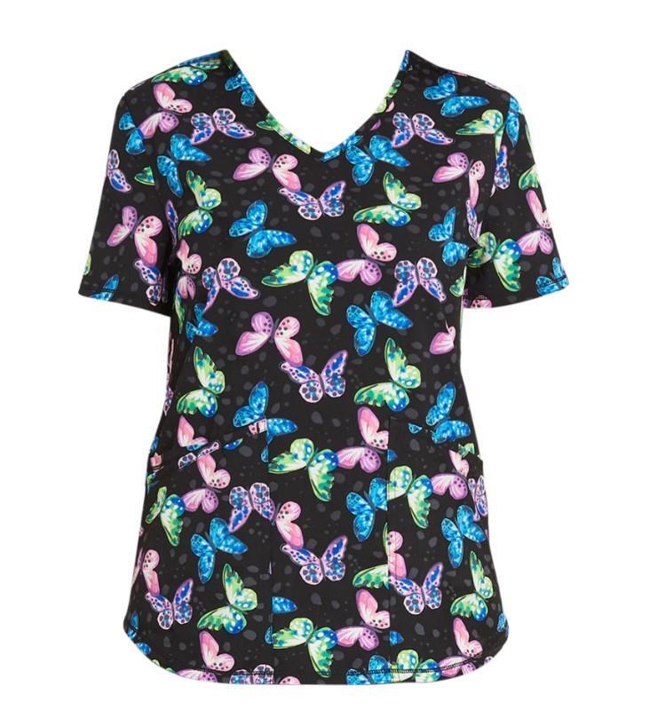 NEW NWT Sz Small Stretchy Butterfly Nurse Medical Hospital Uniform Scrub Top